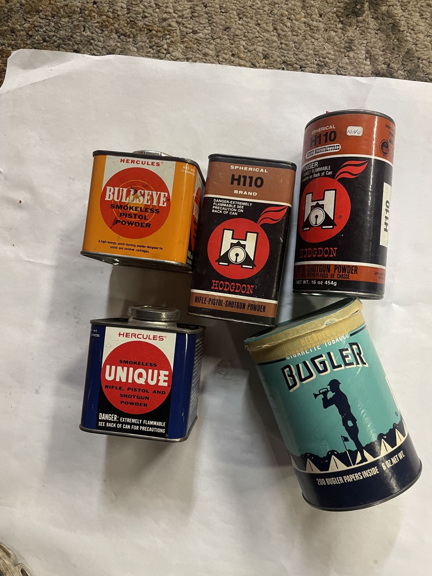 various empty powder and tabacco cans. $20 for all. +(HAZLE TOWNSHIP)