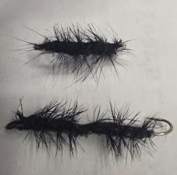 Hellgrammite larvae fly[ FOR LARGER FISH]- trout or smallmouth bass, fished with spin or fly tackle , submerged,[ flies are tied tandem on 2 size 8 hooks or tied on size 6 single hook, with a larger hook eye. $9.oo per fly]; Assorted pack of 8 Hellgrammite Larvae flys, $50.00-; 2 ounce drip bottle of liquid life like clear sheen enhancer for nymphs, + wets + lures$8.00 Tip sheet on where to find larger fish in your favorite stream or river with orders--. all flies are designed and tied in the USA by experienced fly tyers and fly fisherman to catch fish not fisherman Call Charles, leave message and phone number .