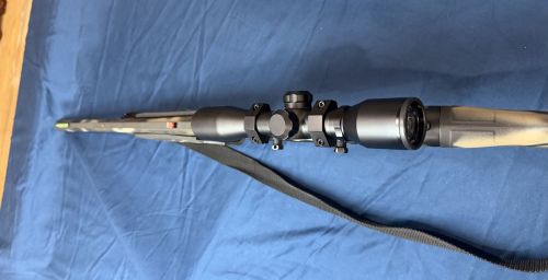 3-1/2", brand new True Glo scope and mounts, like brand new, only fired couple times. +(HUNLOCK CREEK)