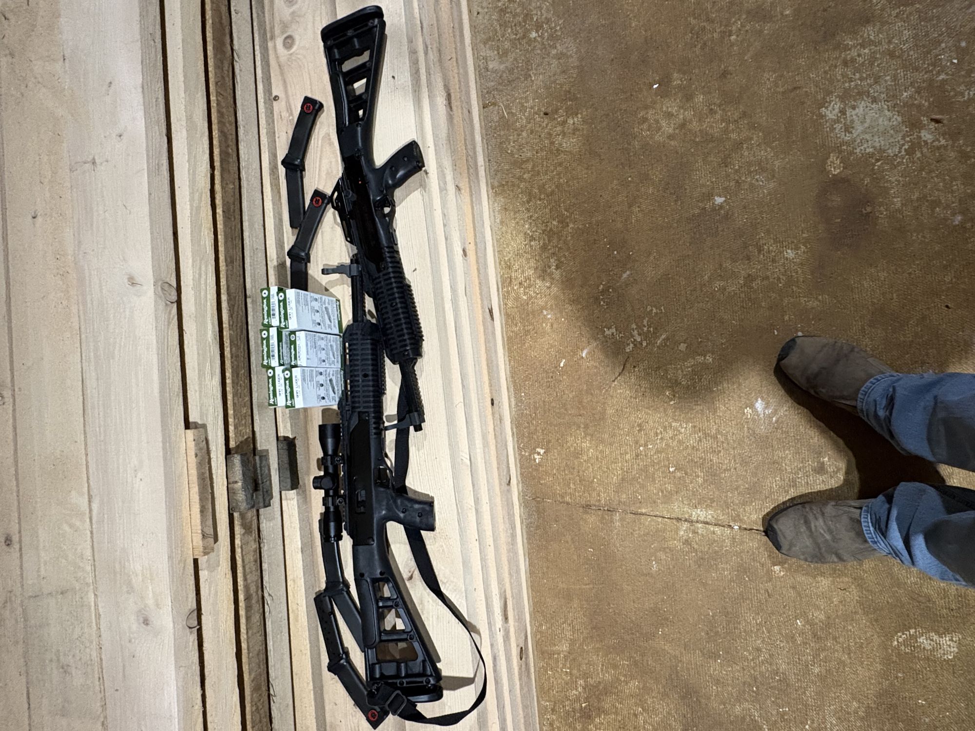 2, scoped, one fired less than 50 times and other has never been fired, with 4 -20 shot clips and 2 10-round clips, includes 300 rounds of ammo., like new, +(FACTORYVILLE)