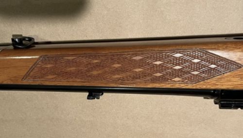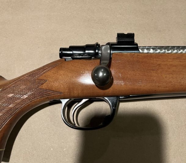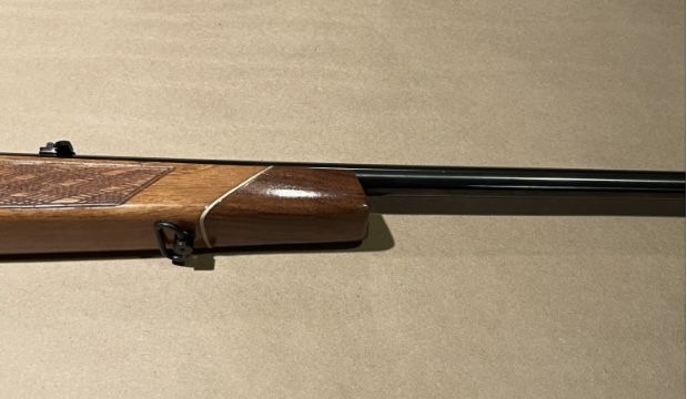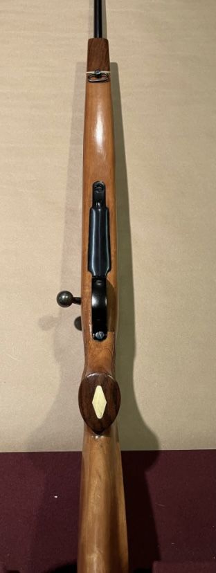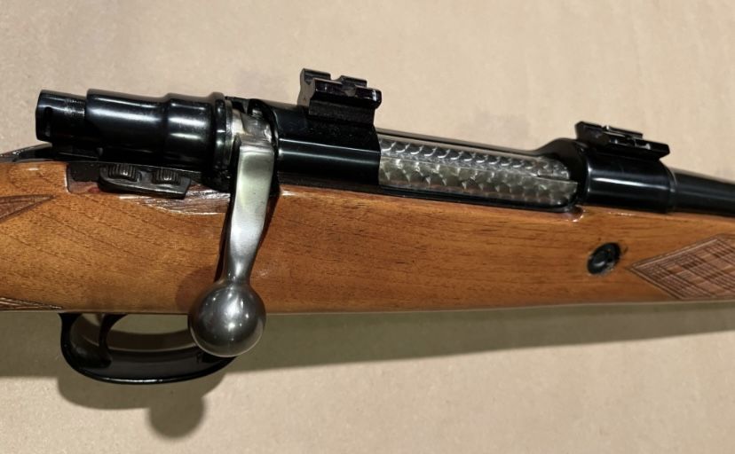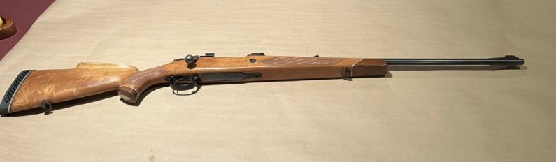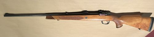 manufactured in England in 1970, original owner, Mauser action with jeweled bolt, 24 inch barrel, drilled and tapped, with Leupold bases, rose wood fire end and but cap, new recoil pad. +(STROUDSBURG)