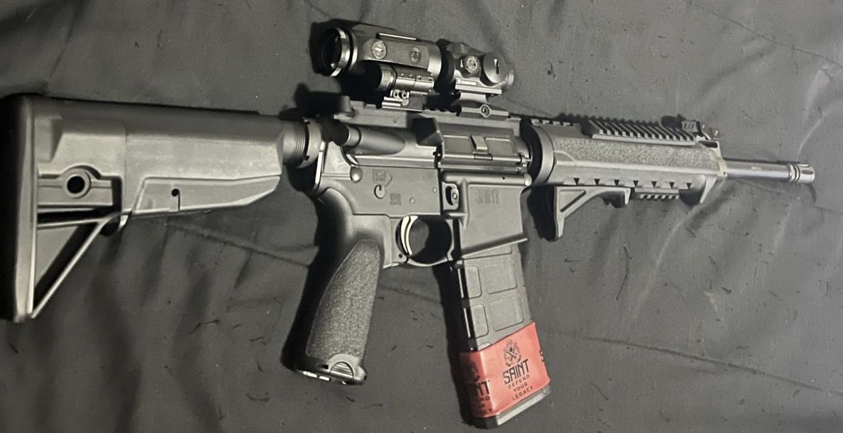 Springfield Armory Saint 5.56 in good condition. Comes with 3 magazines and Romeo 5 with Juliet 5x magnifier. +(DUNMORE)