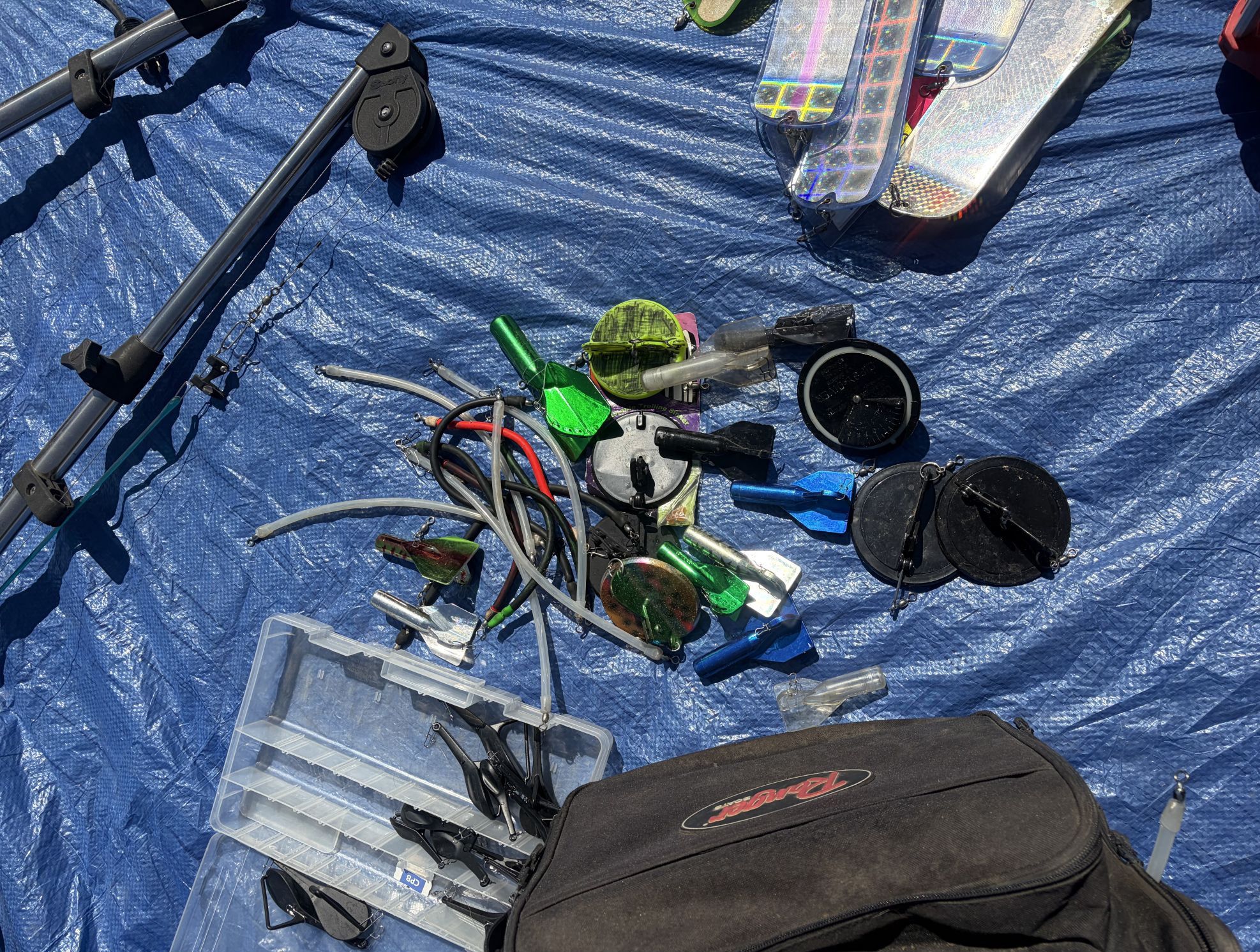 Turnkey Great Lakes trolling setup, Big Jon dual manual planer rigger spooled with Big Jon 150 lb. tow line, (2) Big Jon Otter boat planer boards, (2) Scotty #1116 Pro Pack depth power downriggers with Scotty downrigger cable, misc downrigger weights, Dreamweaver flashers, 2 dozen dipsys, close to 100 spoons, 2 dozen jet divers, diving snubbers, misc. trolling rigs and sliding weights, Lowrance HDS-7 gen 3 with total scan transducer and Navionics MSD/NAV+EA+ East, MSD, Lakes & Coast chip, approx. $4000.00 worth of trolling gear, everything you need for walleye, trout, lakers and salmon, prefer to sell as a whole. Text +(THOMPSON)
