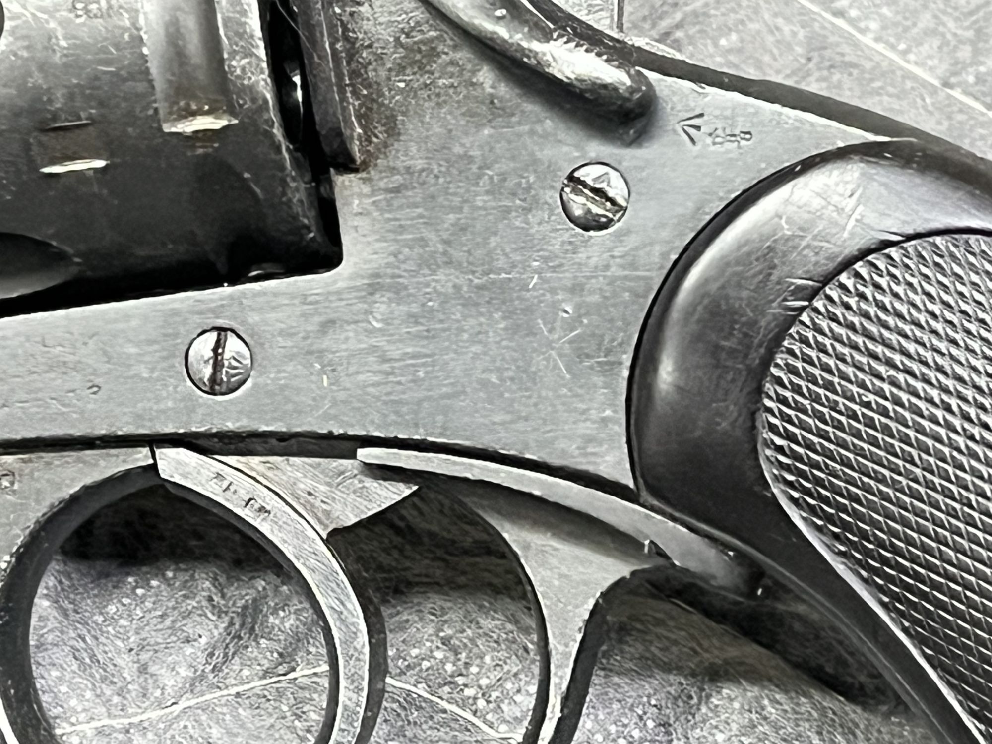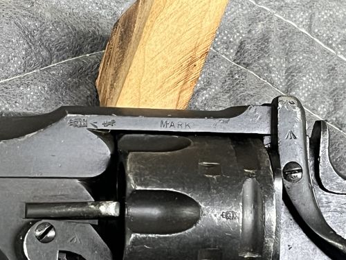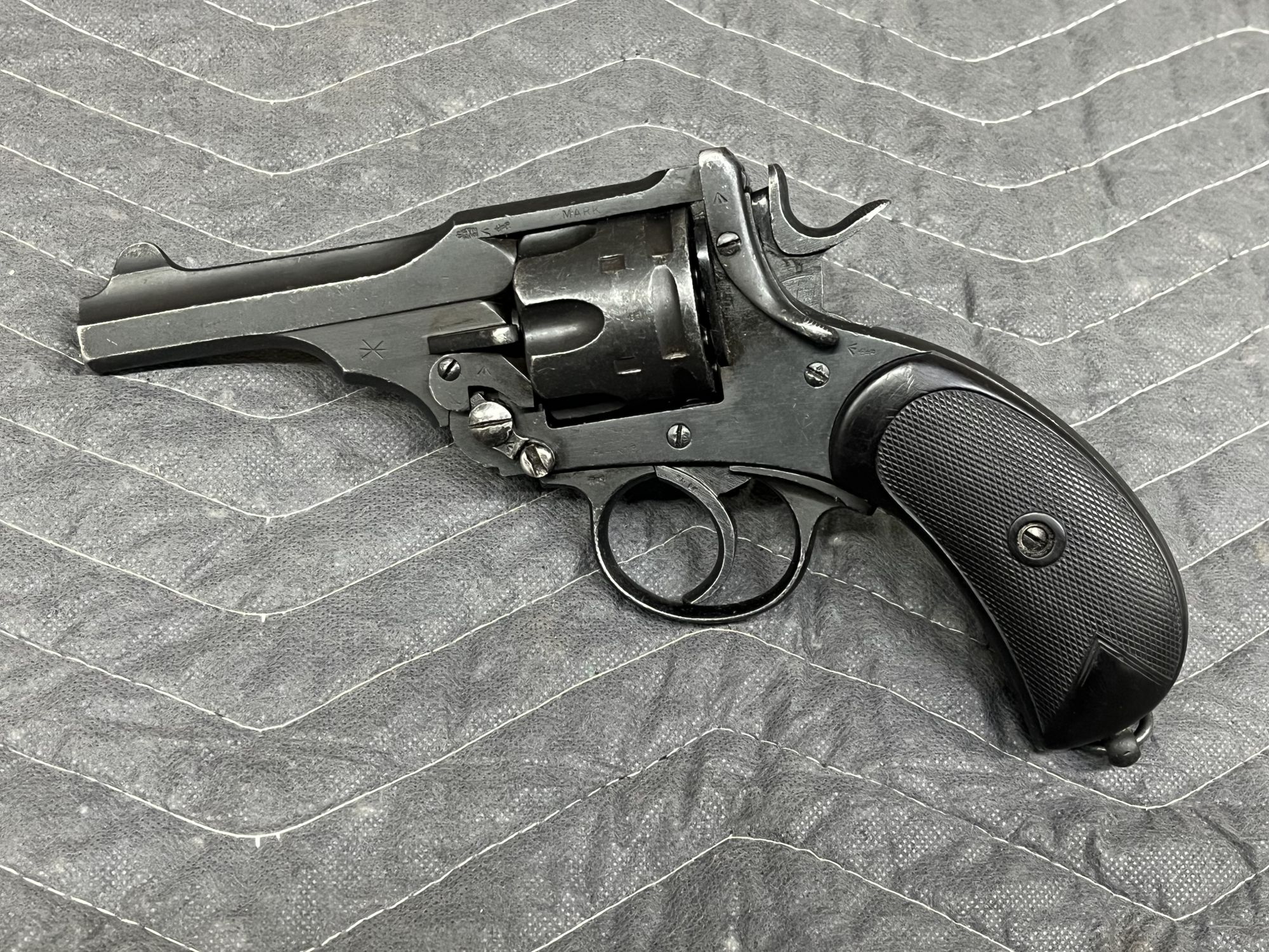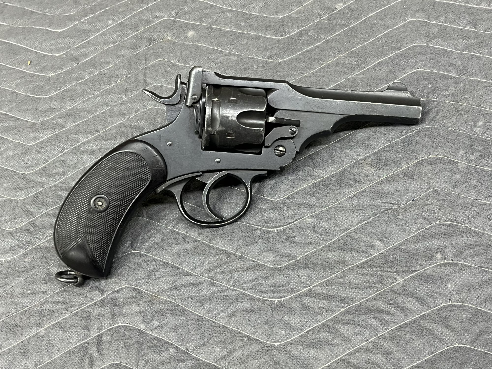Original, Un-shaved cylinder, Boer war era manufacture, I was told it was brought back from WW-1 by the guy's great- great grandfather, does not have the MK-V improvements/modifications, excellent example of a big frame 455, Broad Arrow marked, clean shiny bore, tight, very good finish, includes transfer, ammo available +(MONTROSE)