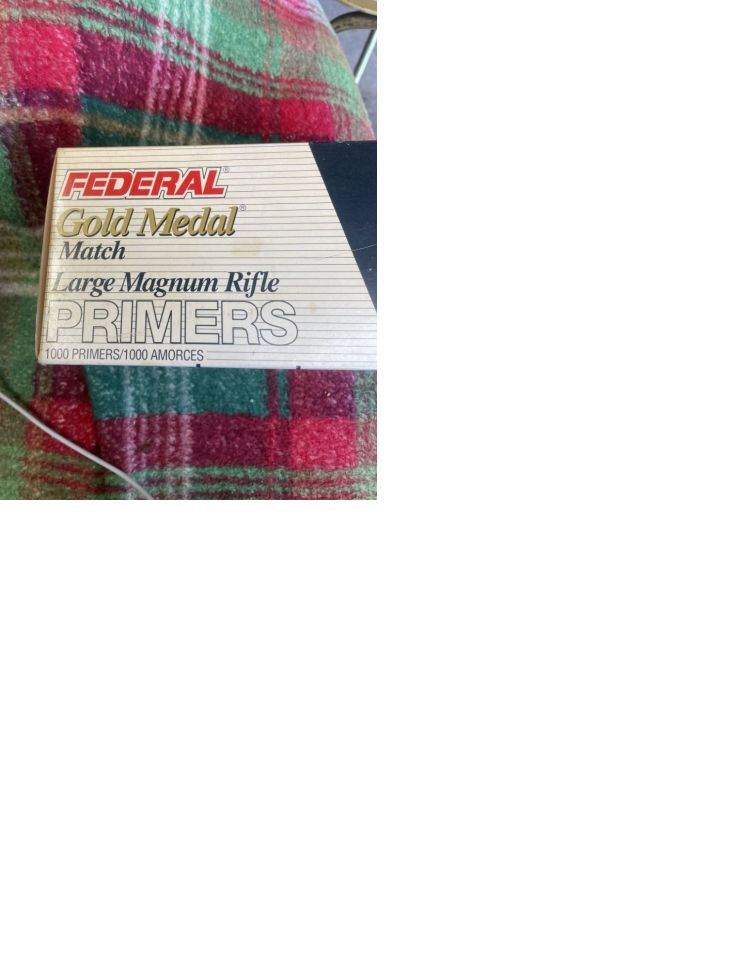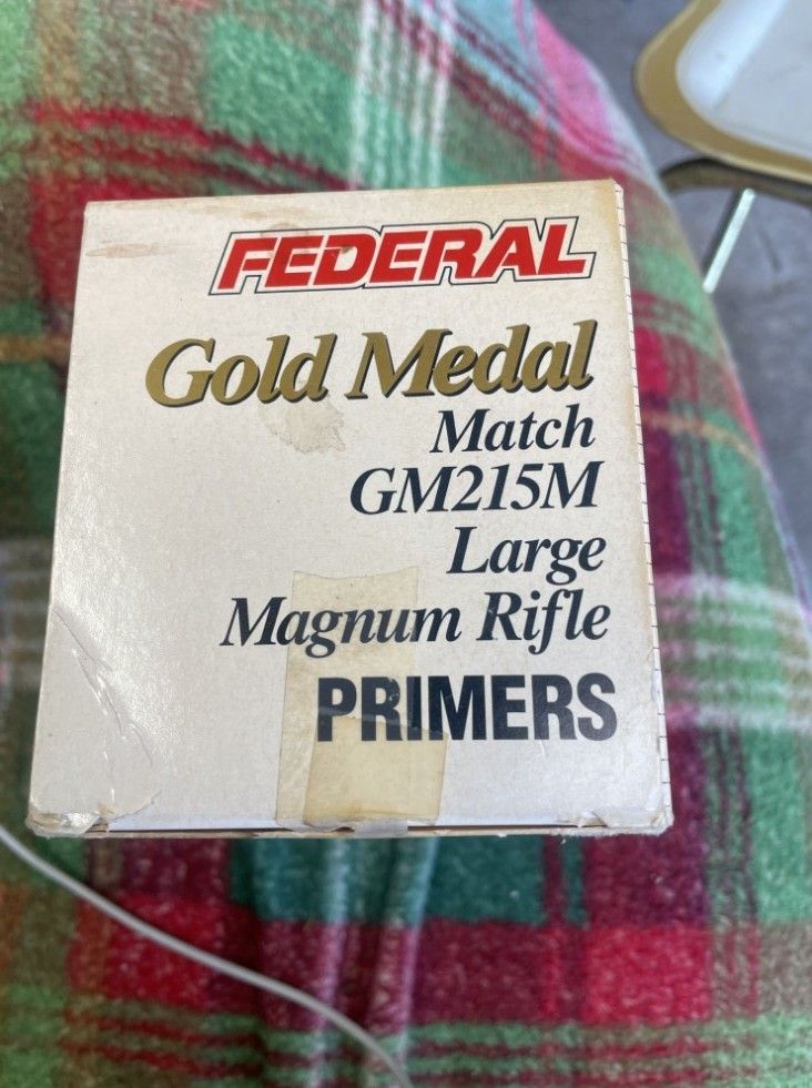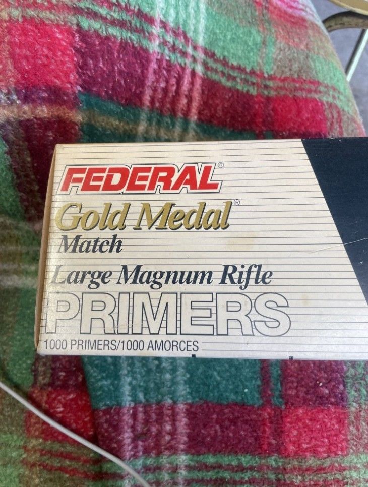 Federal gold medal match large magnum rifle primers. 800 pcs. $55 or trade for small pistol or small pistol magnum primers+(HAZLE TOWNSHIP)