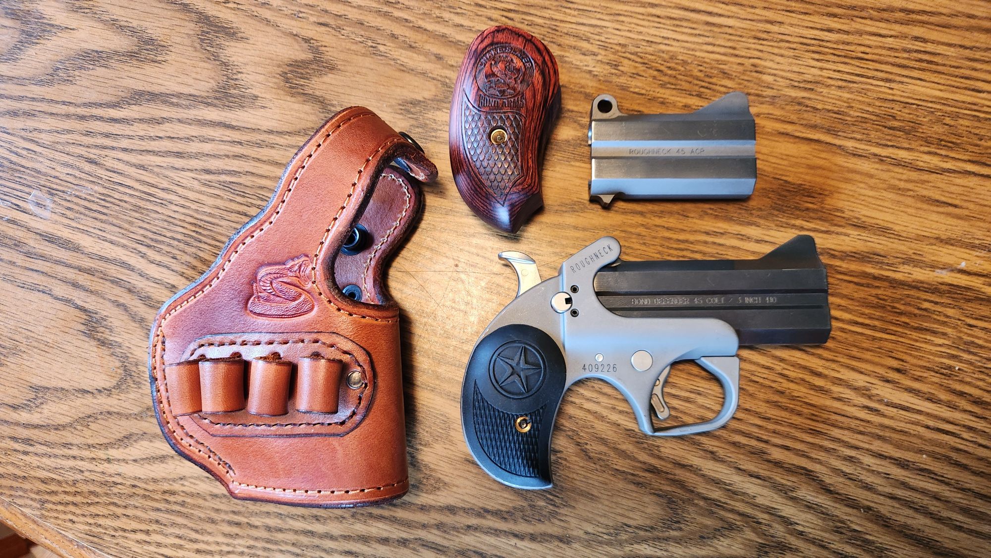 45 long colt /410 3" chamber plus 2.5" 45 acp barrel, wood grips, holster..must transfer+(TUNKHANNOCK)