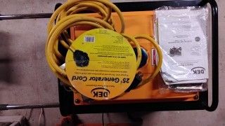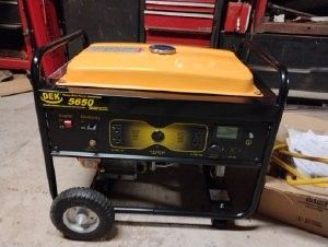 Dek 5650 11HP, industrial, 5650-7345 surge, 240V., 120V., 2-duplex outlets,12 volt charging, less than 10 hours run time, 25 ft. cord, adapter, in person pickup only, (FOREST CITY) $475.00 Cash Only