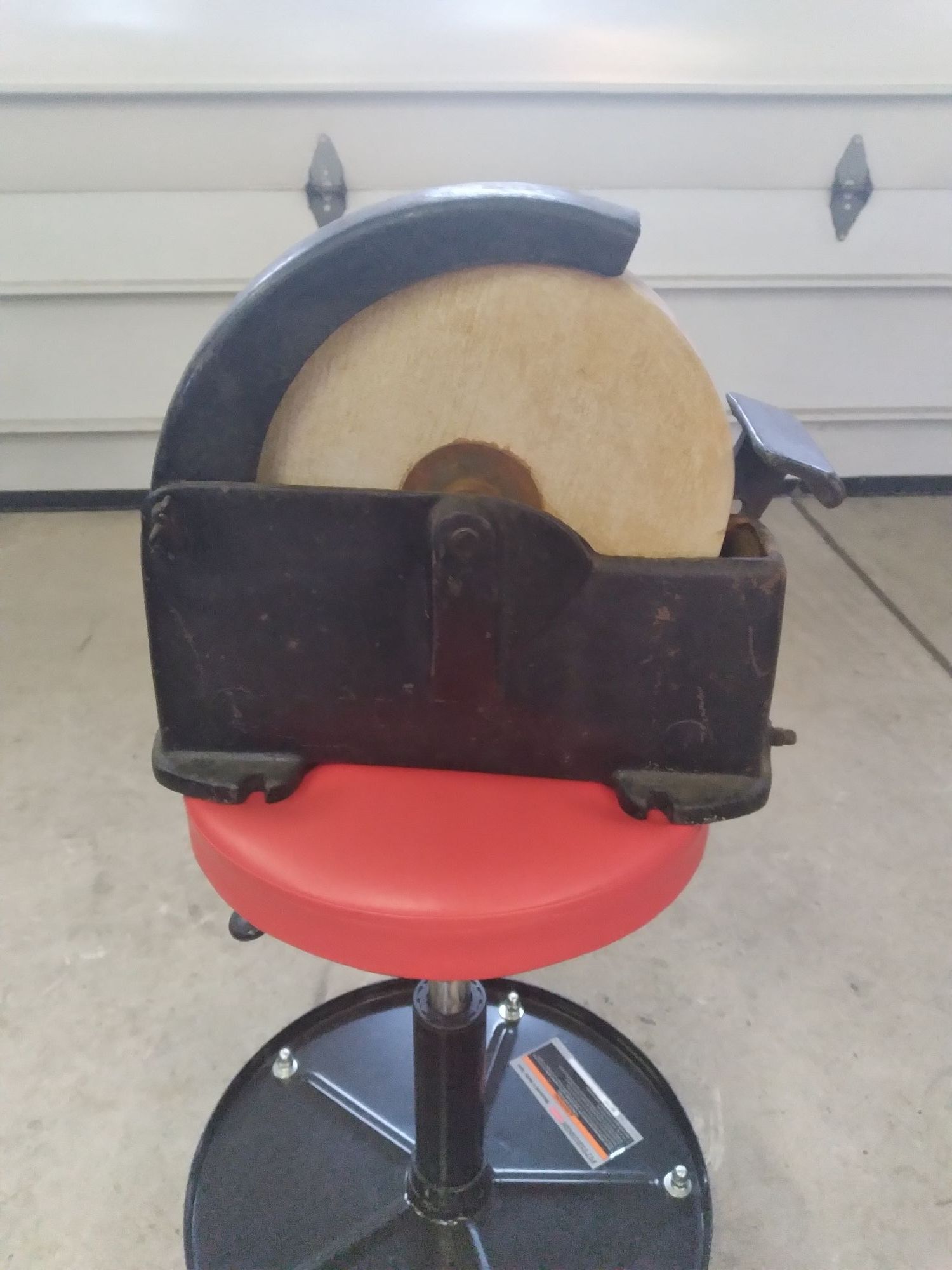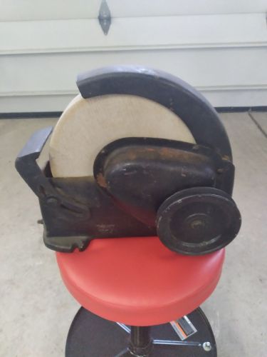bench grinder, knife maker, blacksmith tool, wet stone grinder, 10", model is the gear drive to belt to motor system, 10"x 1-1/2" original sand stone wheel is in excellent condition, machine is all original, no cracks or fractures in the cast iron machine, tool holder and wheel cover, drain plug removes easily to drain water, very heavy duty. +(W.WYOMING) Make offer