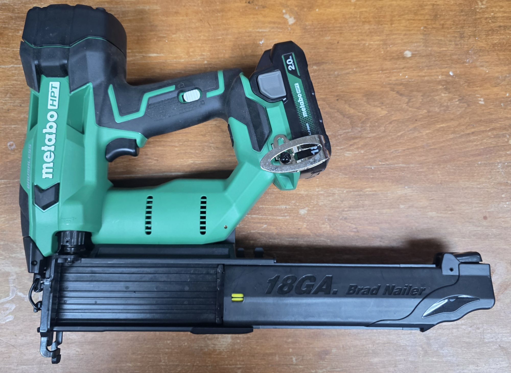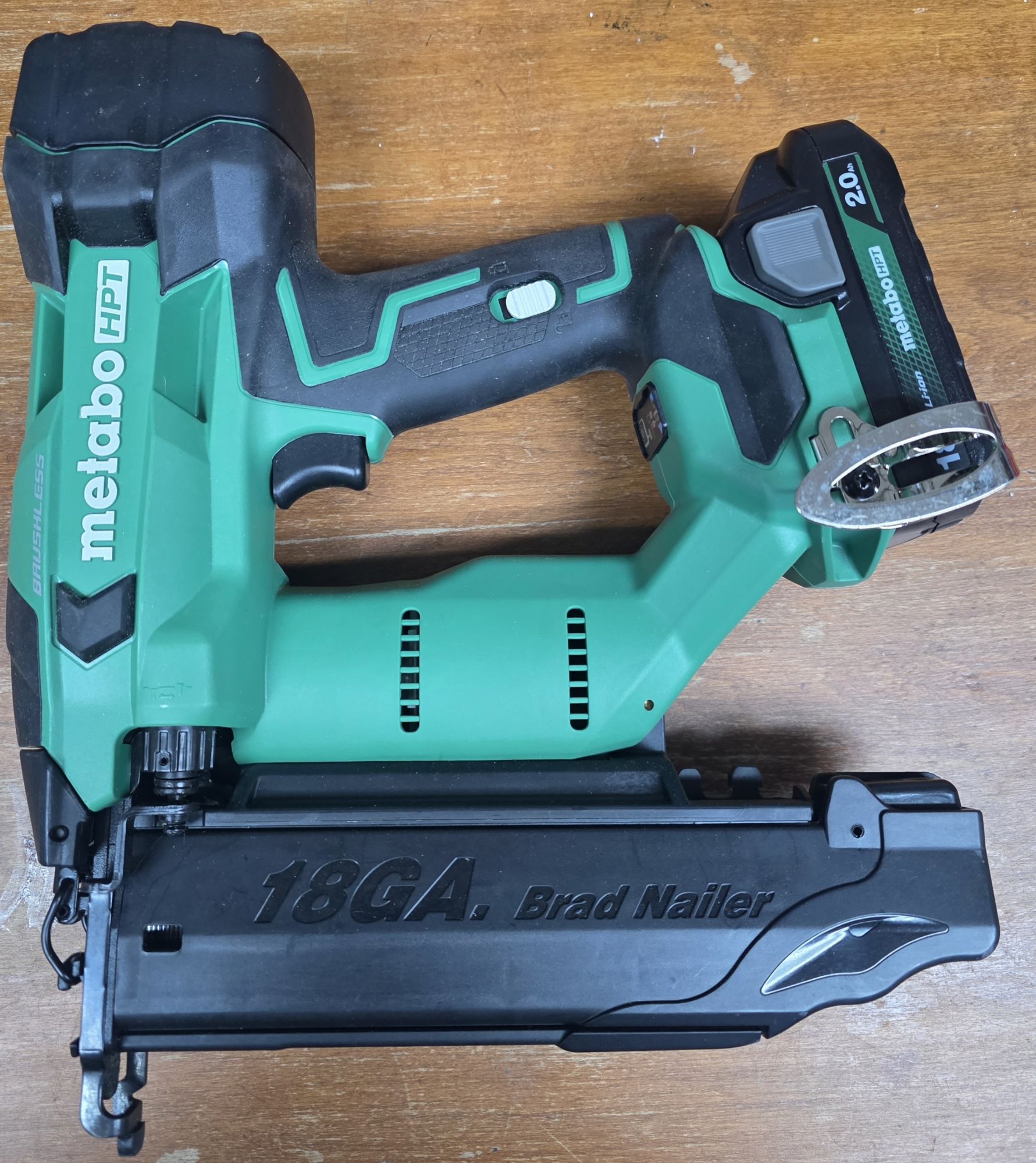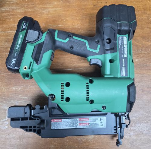 Practically brand new, 18 volt, 18 gauge, used 1 time for trim work, perfect condition, with battery, charger and bag. +(LUZERNE)