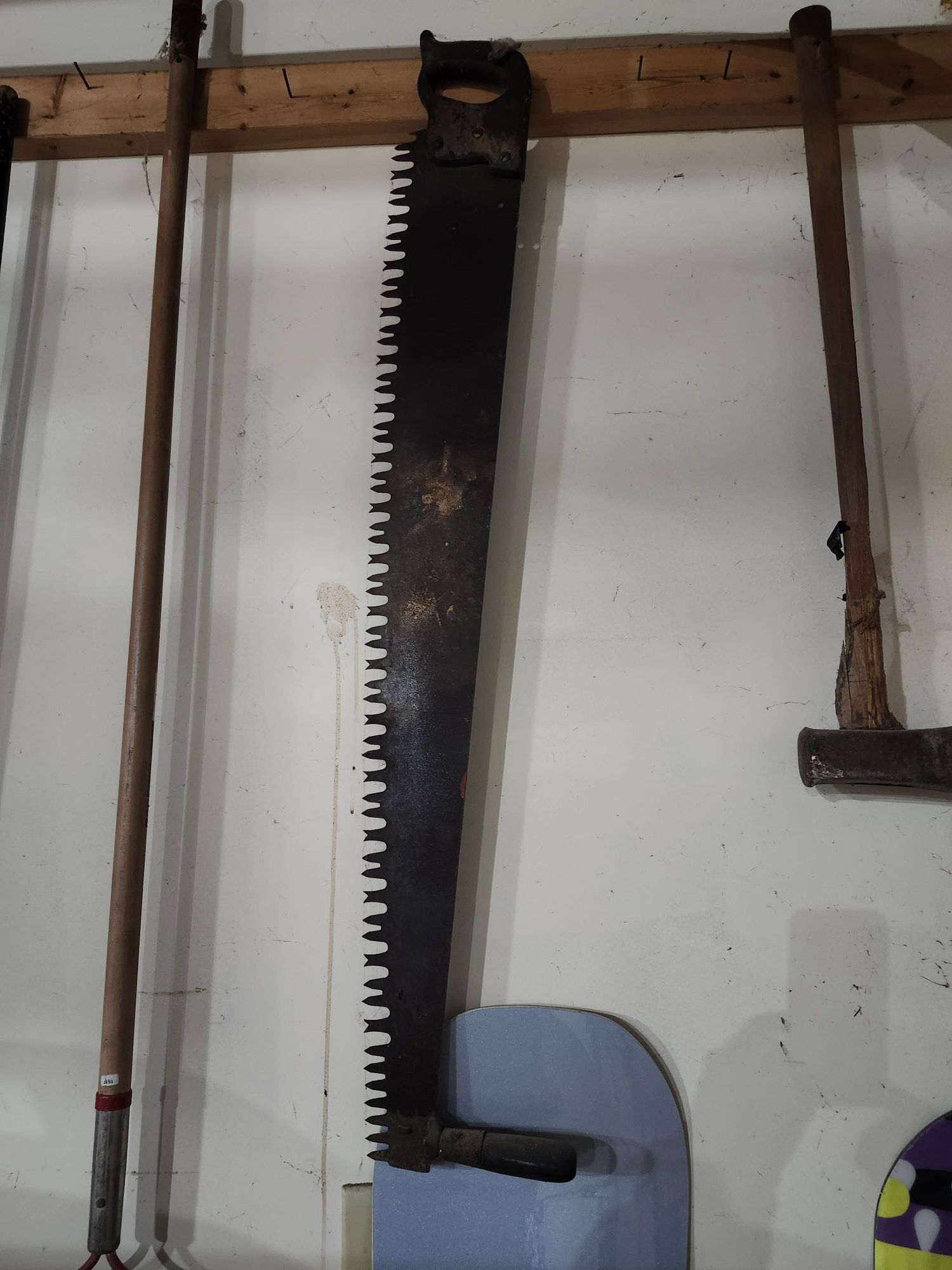 2 man, 5', antique crosscut saw, good condition +(ROARING BROOK TWP)