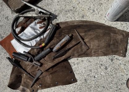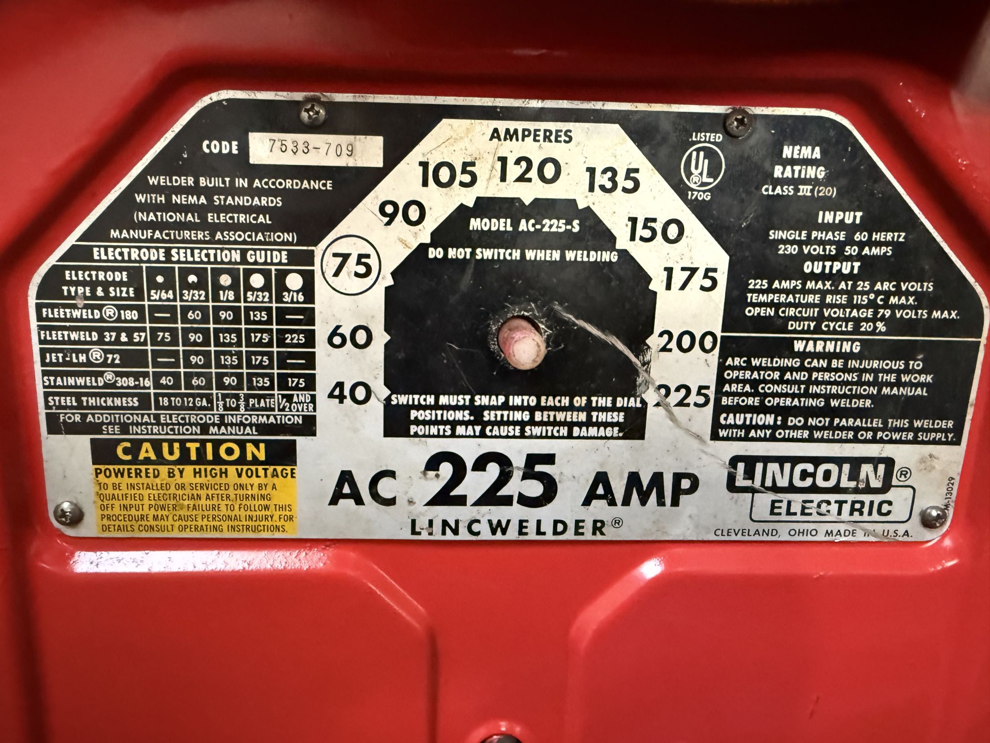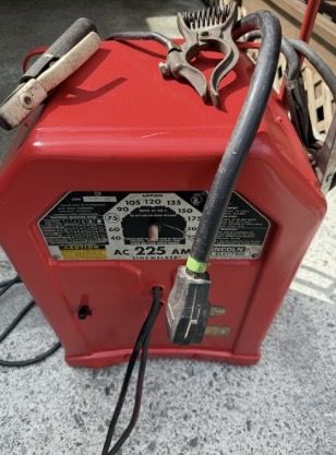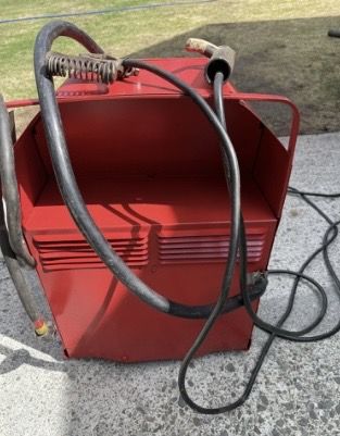 works perfectly, includes miscellaneous items, various welding rod leathers gloves chipping, hammers, extra ground +(LAKE ARIEL)