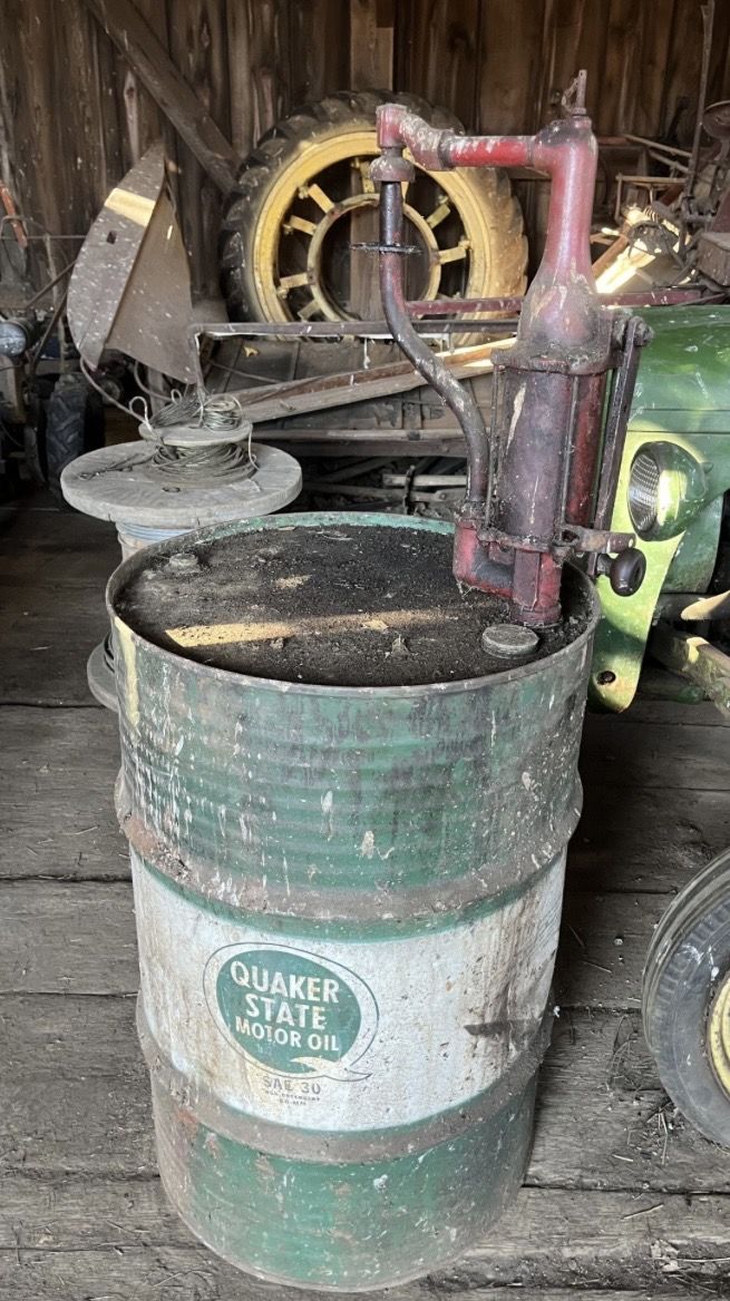 55 gallon, with hand pump, very good condition, would make garage decor or perfect for man cave, will consider separating +(BEAR CREEK)