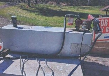 100 gallon fuel transfer tank, with pump and automatic nozzle, +(SHICKSHINNY)