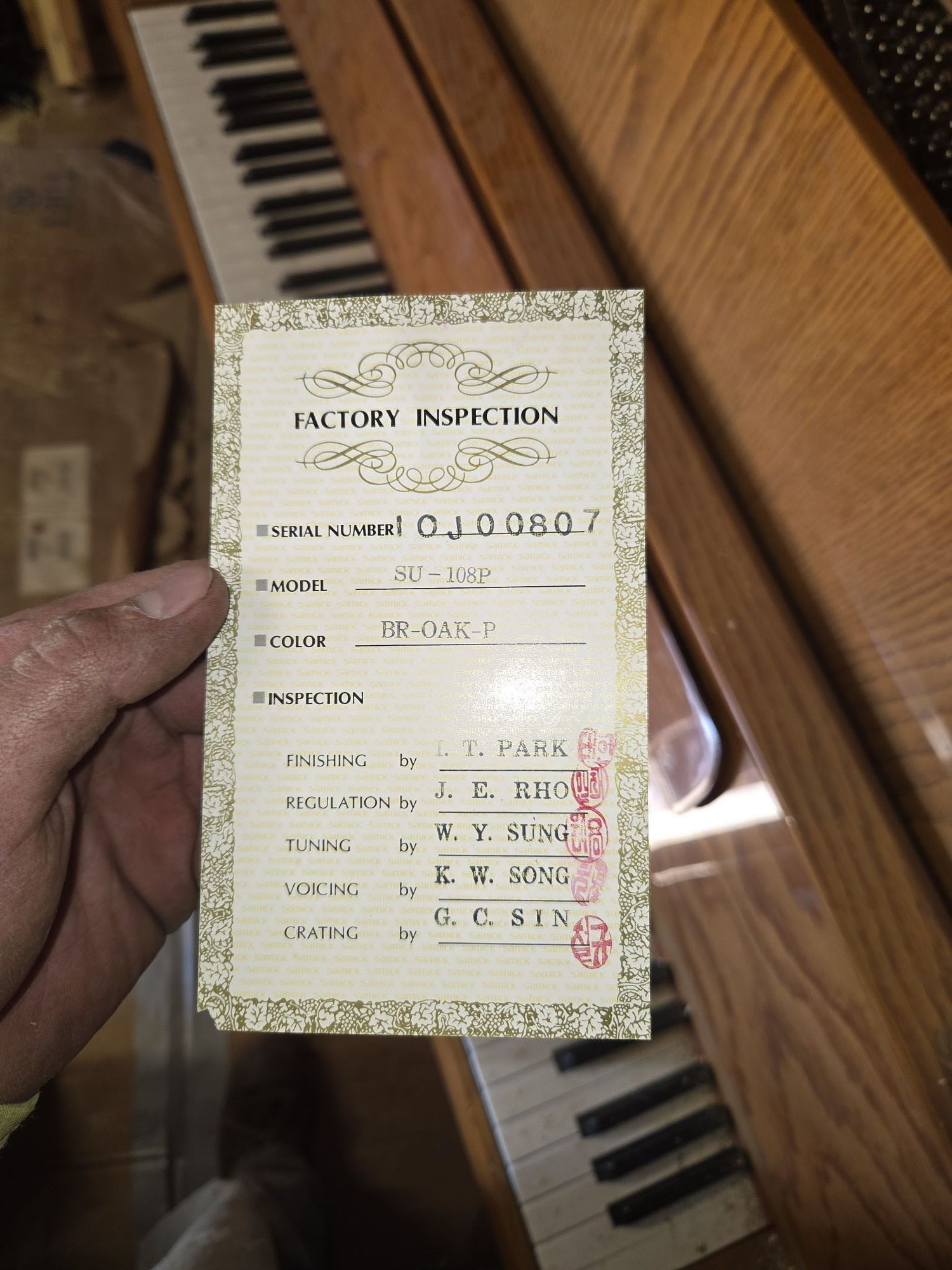 SAMICK MODEL SU-108P PIANO