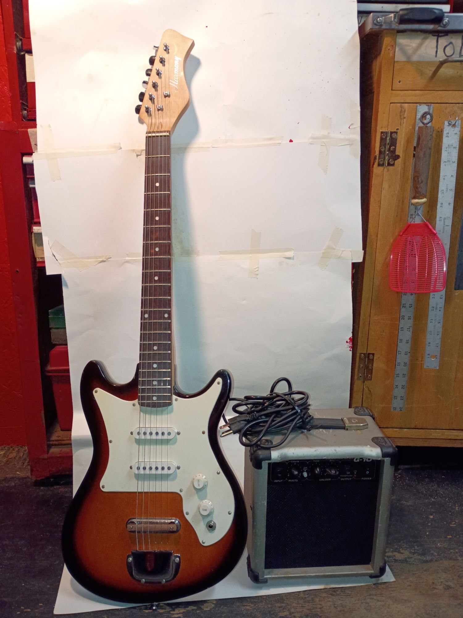 new strings, gig bag, metal guitar stand, small amp, cord and strap, model 12815 +(WILKES BARRE TWP.)