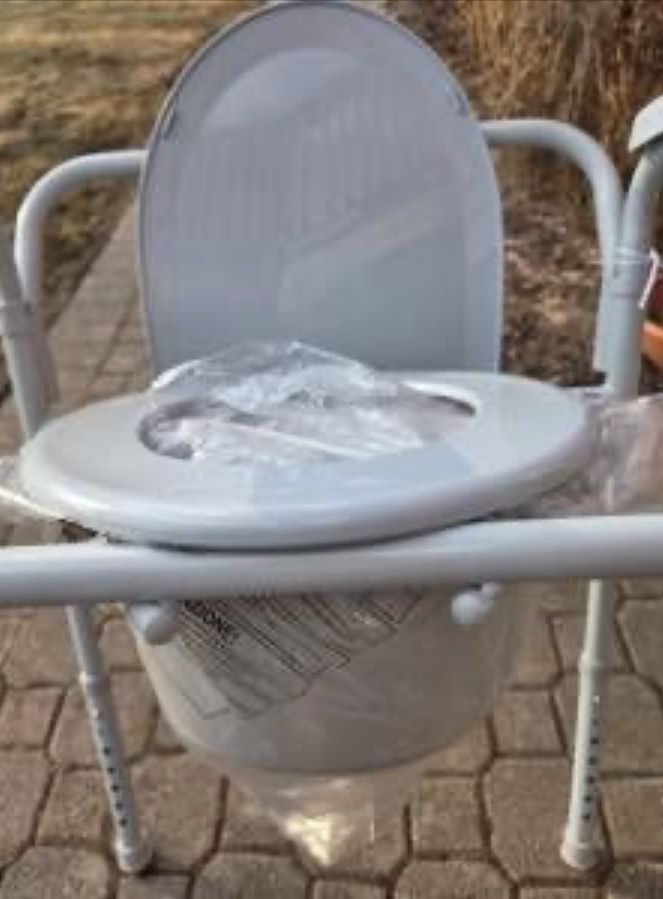 Folding. 7.5 qt. bucket, 3-in-1 design for a bedside/ raised toilet seat/ toilet safety frame, white, lightweight +(LITTLE MEADOWS)