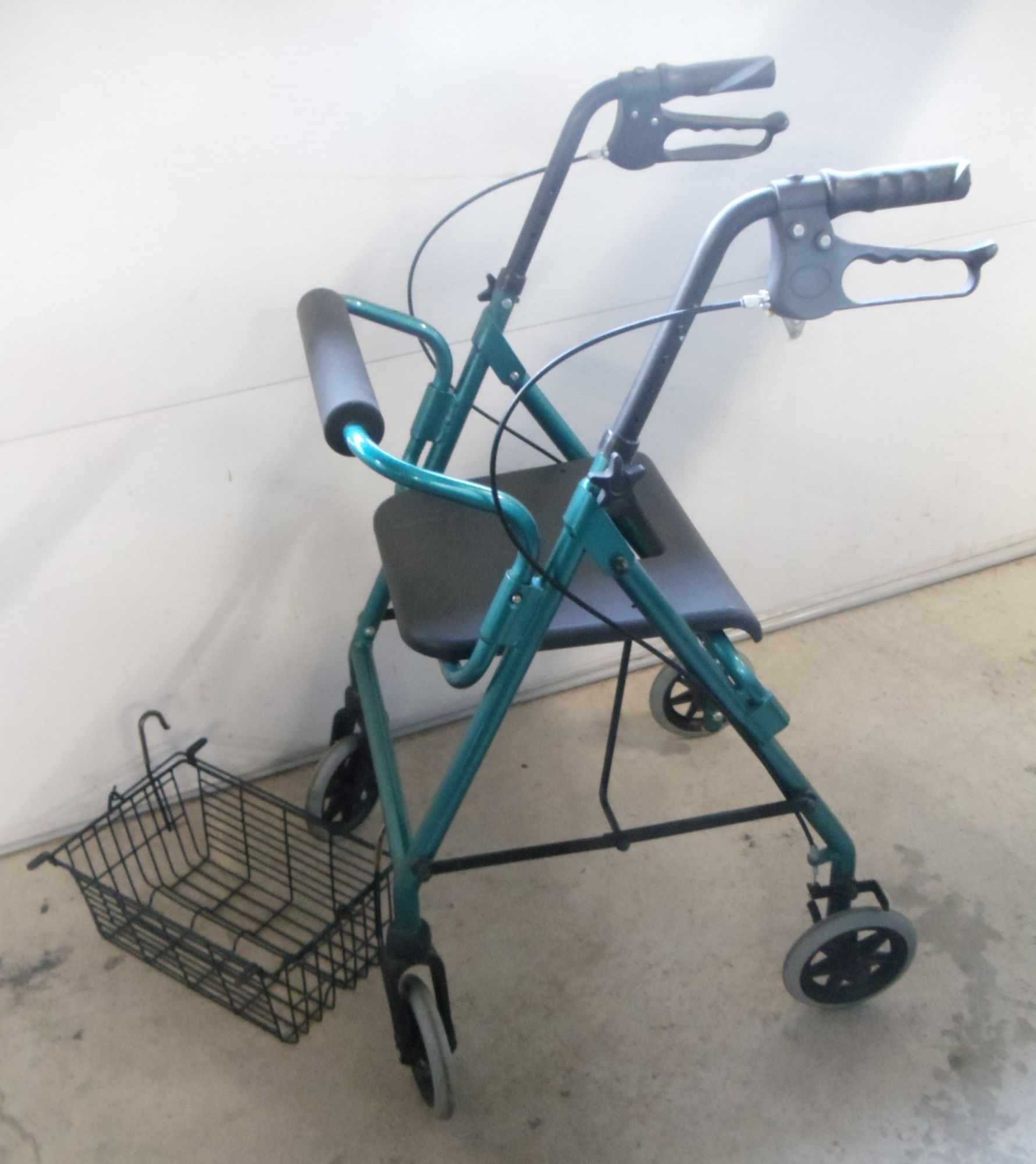 with seat, basket, wheels, hand brakes, teal color. Call only (landline) +(LARKSVILLE)
