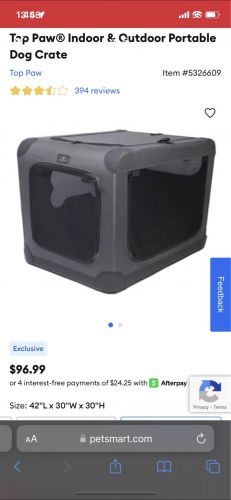 Like brand new, used less than one week at night for 2 kittens, top, front and side zipper open, waterproof bottom for easy cleaning and collapses flat, sells for $97.00 new, 42"L., 30"W., 30"H. +(DICKSON CITY)