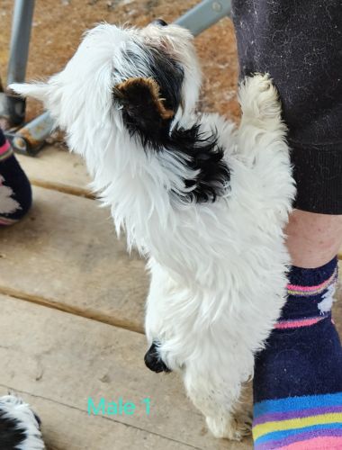 2 Male Parti, ready to go, 8 weeks on 4/12/26, vet checked, first shots, all deworming done, parents on premises, raised underfoot, around kids, and other dogs, all are charting to be 4.5-5lbs as adults, Serious Inquiries Only, Call or text +(CONKLIN NY)