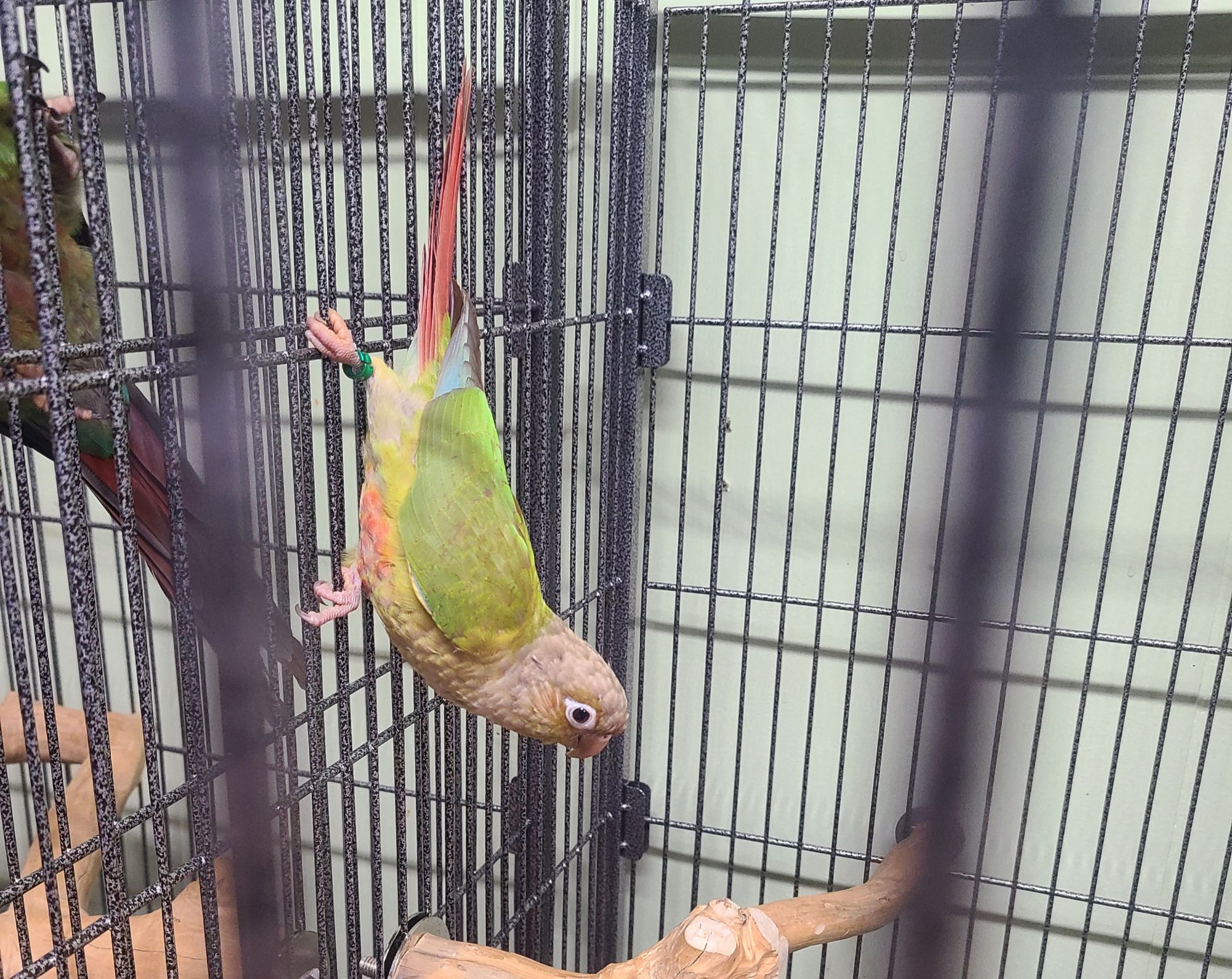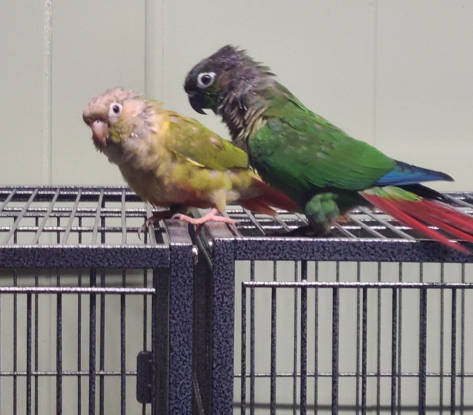 one regular color 1 year old male, one pineapple 1 year old female and one 4 year old female, younger $200.00 each; older $100.00; flight cages available +(ASHLAND)