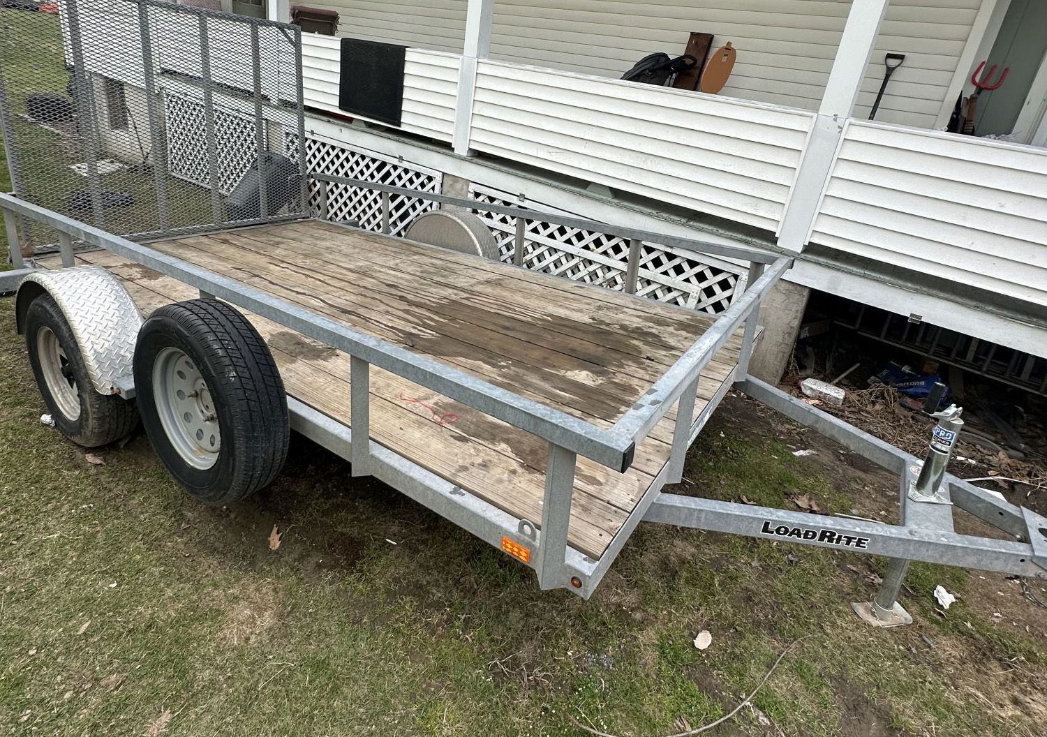 6.5x12', galvanized, with wood decking, spare tire, all lights work, have title. +(HANOVER TOWNSHIP)