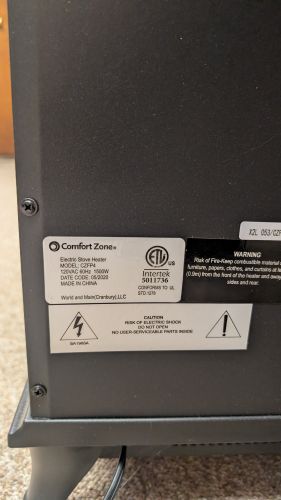 COMFORT ZONE ELECTRIC FIREPLACE SPACE HEATER