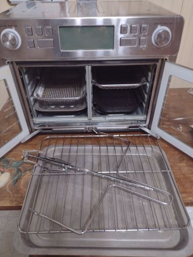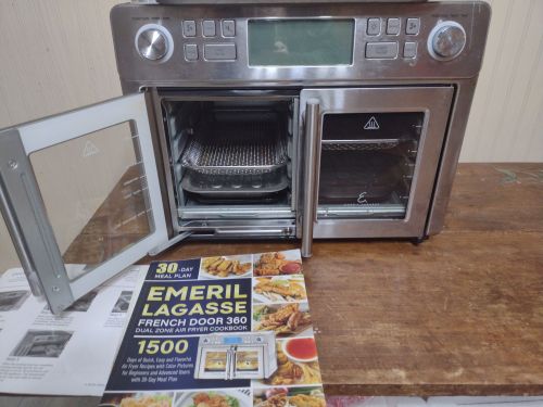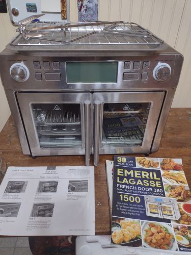 Nice large, multi function, 25 qt., 2 door, including Emeril cookbook. very good condition, measures approx. 18x 13x 12" +(BLAKESLEE)