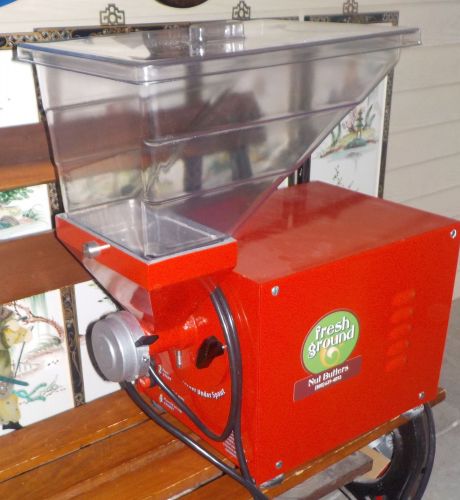 Makes spreadable nut butter from peanuts, cashews, almonds, pistachios, pecans, macadamia nuts, hazelnuts & cacao beans, dry roasted & un-blanched nuts work best, consumers want to know what is in their food, this allows you to see and know what exactly your ingredients are and how applied with a superior fresh taste, raw unroasted nuts are not recommended as they may produce a thick & course nut buyer meal paste or not a nut butter at all, all nuts must be diced or chopped, smaller sizes feed into the mill properly and are priced lower than fancy grades, almonds especially need to be roasted & medium reduced, 11-1/2"W., 21"D., 22-3/4"H. Call Steve +(WAVERLY TWP.)