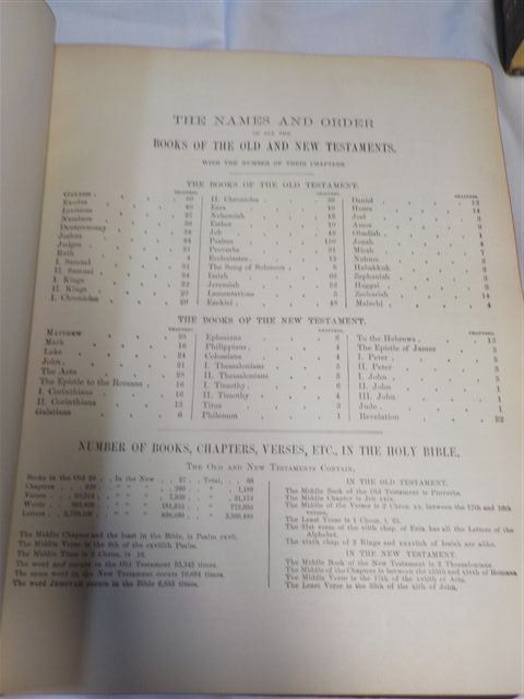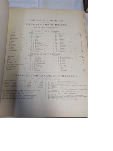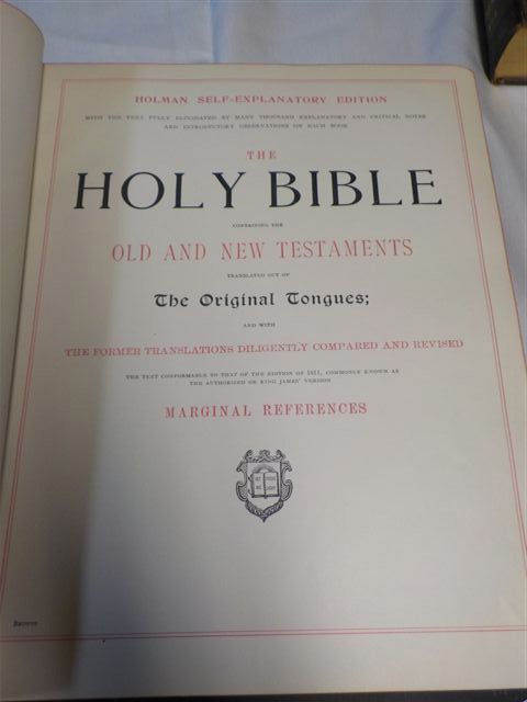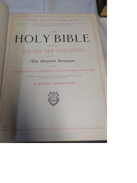 Copyright 1891, Holman Leather Bible, 5"X 12"X 9-1/2", commonly known as and authorized by King James Edition, Free Masonry Leath Hadlev, AJ Holman & Co.., received over 40 years ago, never used, no writing inside, weighs 14.2 lbs. Call Steve +(WAVERLY TWP,)