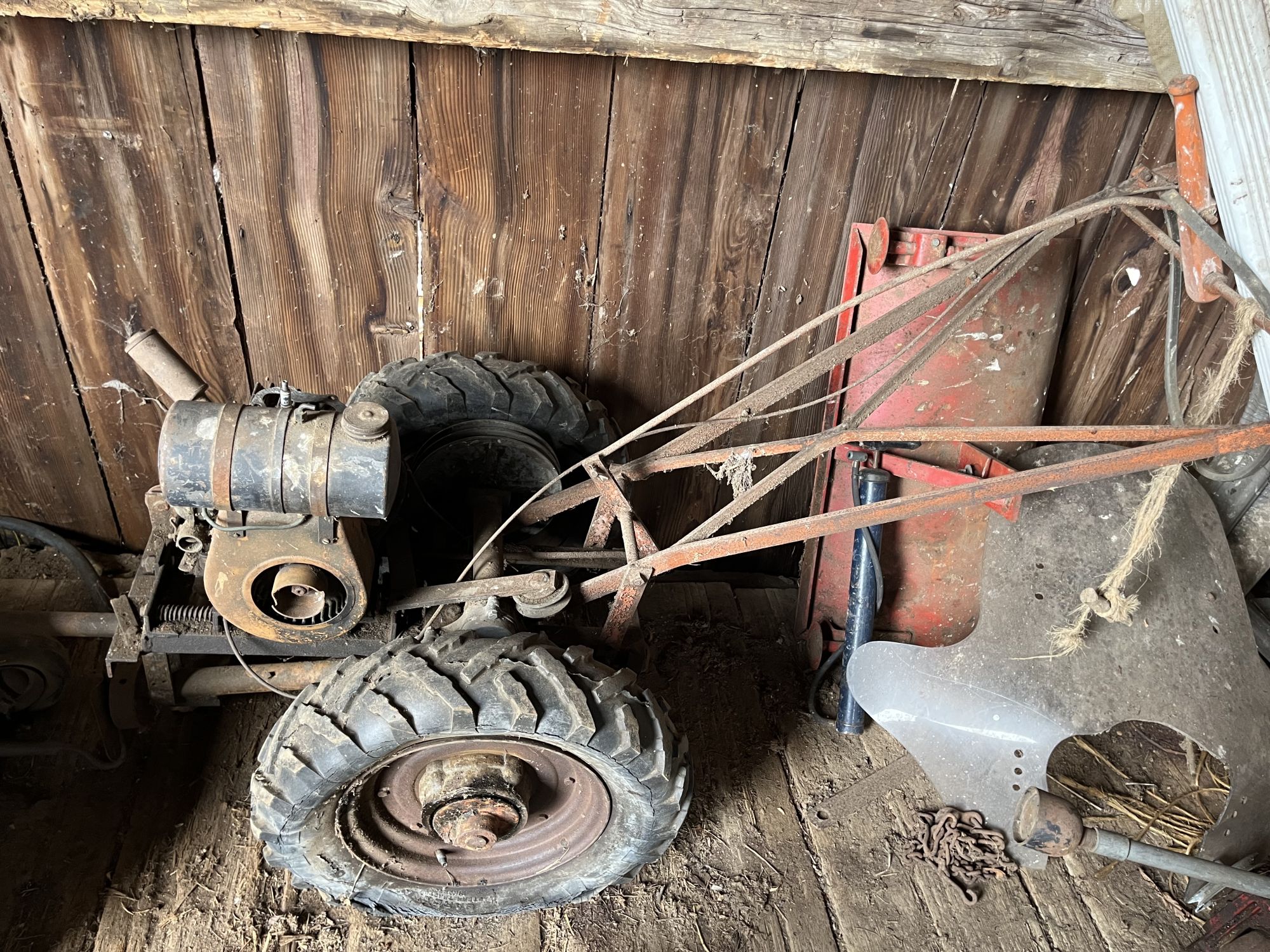 Looks similar to a Planet Junior or David Bradley but cannot find any markings to confirm, no attachments, believe was deigned to be used with sickle bar, got running approx. 35 years ago just for fun, has been sitting in barn ever since, probably could get running again with some TLC, would make interesting yard art. +(BEAR CREEK) Make offer