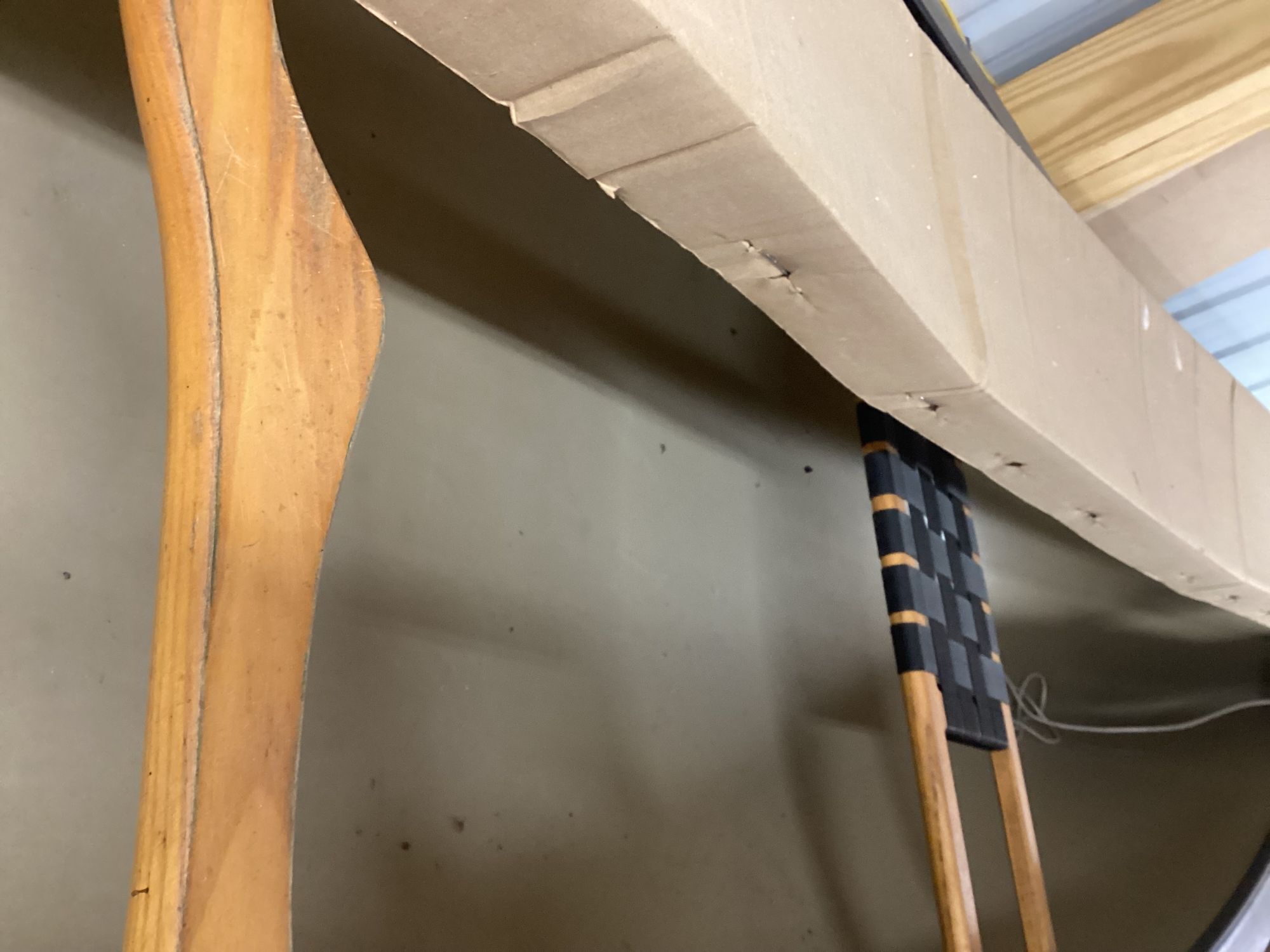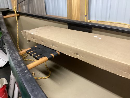 15 foot, 2 seat canoe. Made of Royalex. Weights about 50 lbs. Keel guards, 2 high end wood paddles, strap on seats with backs included. Good condition.+(HILLSGROVE)