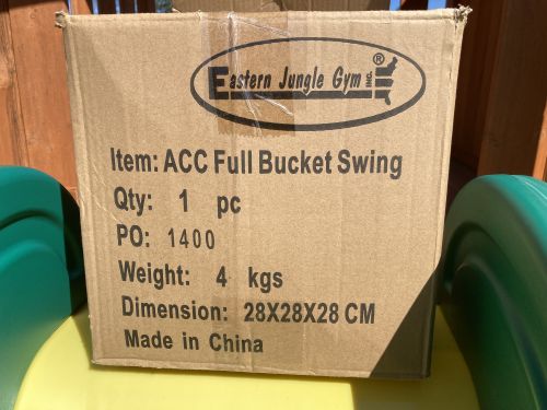 High back, full bucket, great condition, coated chains to ensure a pinch free grip for your child, original price $49.95; +(HARDING)