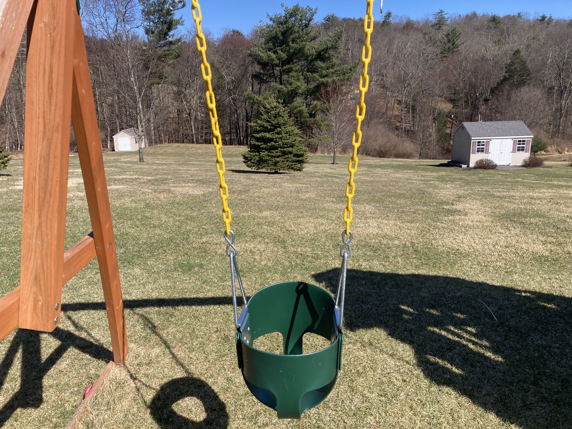 High back, full bucket, great condition, coated chains to ensure a pinch free grip for your child, original price $49.95; +(HARDING)