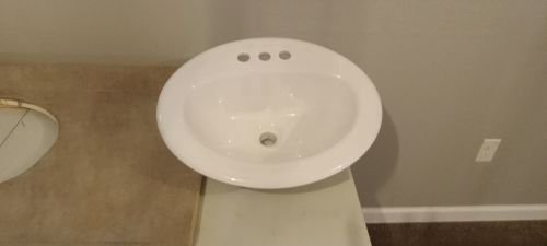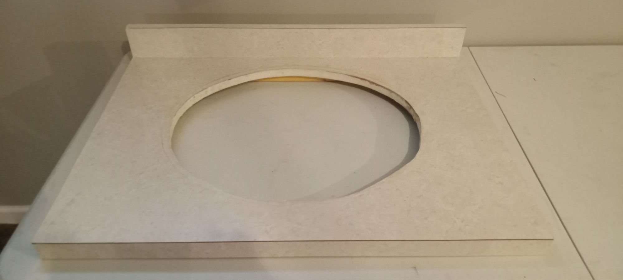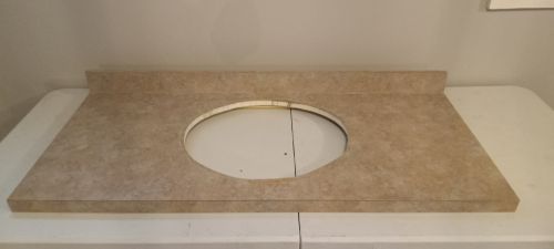 3-hole with vanity tops, 1-48" grayish/ brownish stone, 1-30" whiteish/ grayish stone +(SHAVERTOWN)