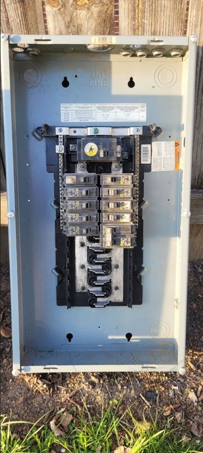 Square D Homeline, 100 amp, 24 slot panel, includes 1-100 amp, 1-20 amp, 1 double 30 amp and 8- 15 amp breakers +(SCRANTON)