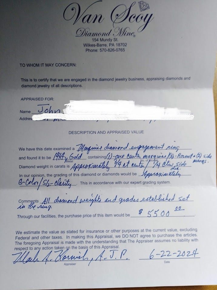 Exquisite, custom made by VanScoy's, timeless elegance, breathtaking 3/4 carat marquise cut center diamond, this stunning piece is accented by two marquise side diamonds and two solitaire side diamonds, adding a combined 1/4 carat of brilliance to the setting, crafted in 14-karat gold, this custom-designed ring radiates sophistication and style, includes complimentary check-ups, professional cleanings, and appraisals for life from VanScoy's, new appraisal June 22, 2024, recently appraised, ensuring current market value and authenticity, serious inquiries only, this is a rare and elegant piece that must be seen to be fully appreciated. Make a genuine offer and own a timeless treasure. Cash only +(MOSCOW)