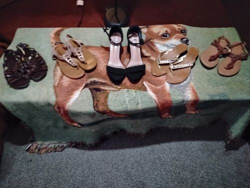Like new, 4 pair sandals barely worn, 1 pair heels worn once, sizes 6-1/2 -7, must take all. Text (PLAINS)