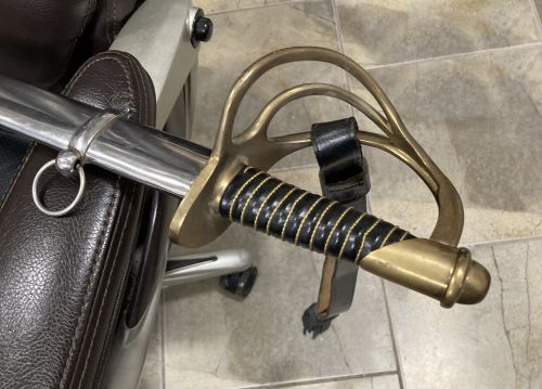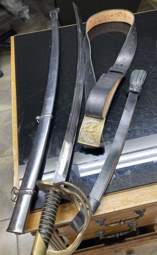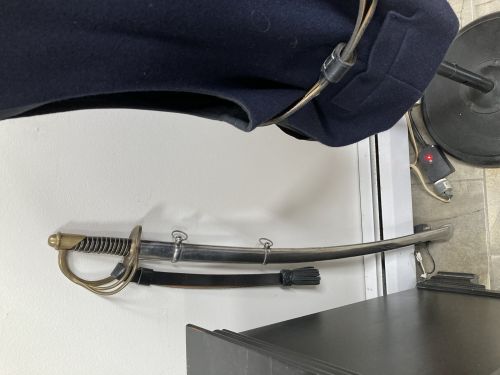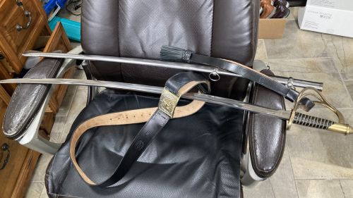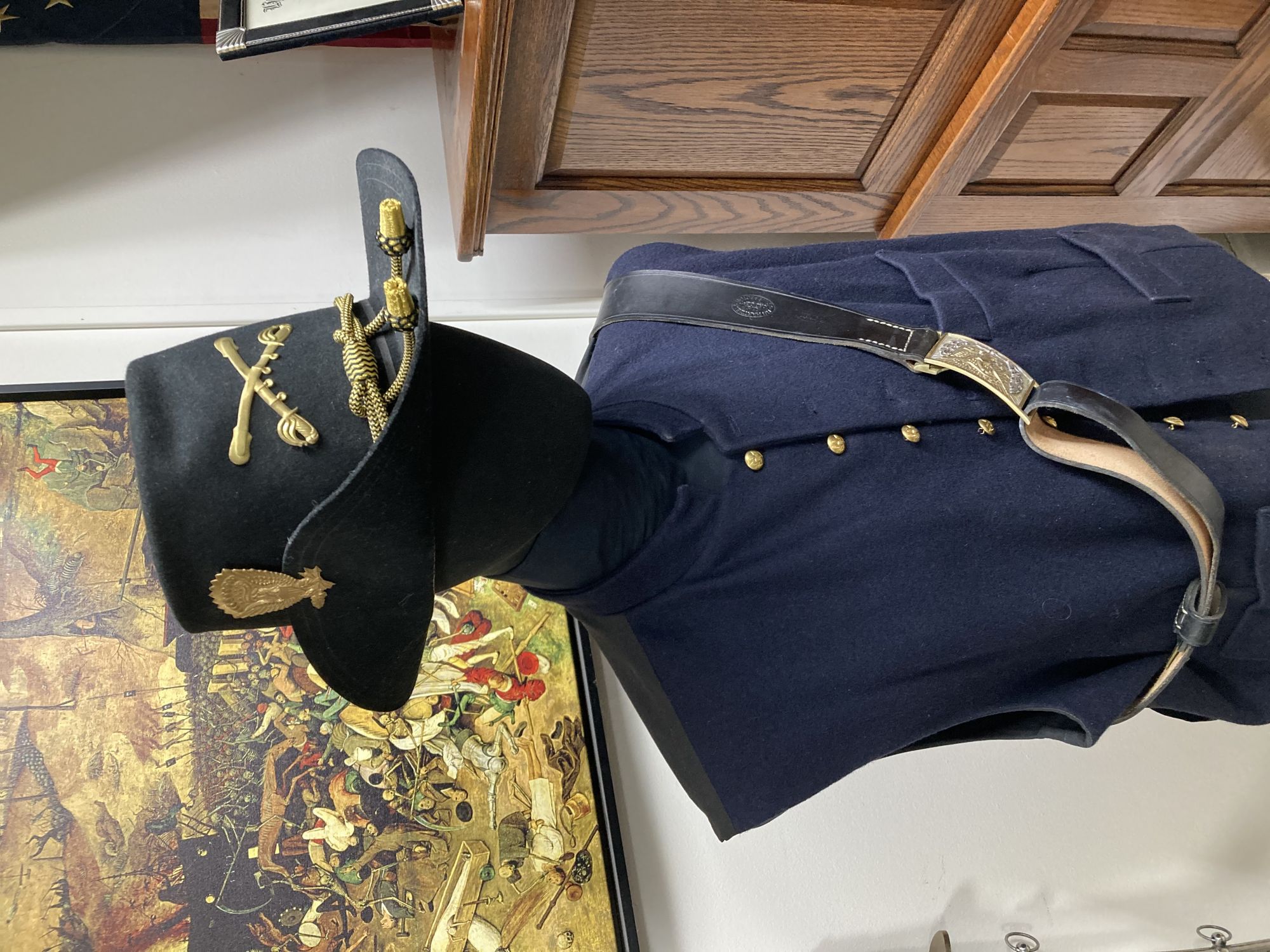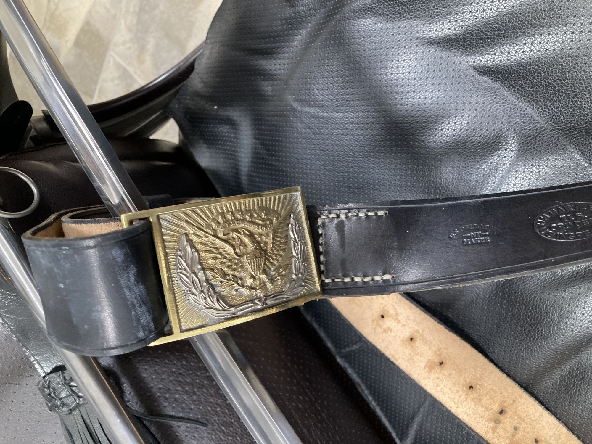 belt buckle, leather belt with sword hanger, hat, wool vest, from a Civil War Gettysburg re-enactment (DICKSON CITY)