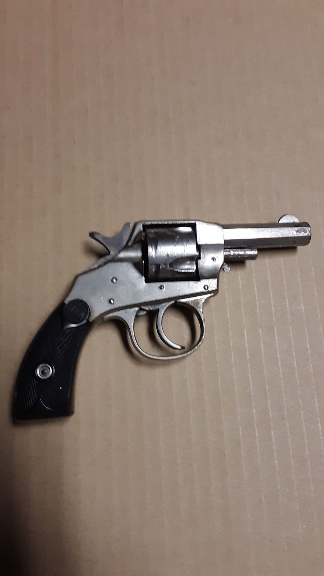 20th Century, sloppy cylinder fit to barrel, worn stars on cylinder, shoots but shaves lead off bullet. +(SCRANTON)