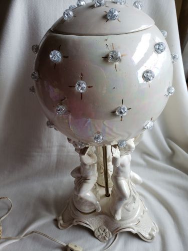 VINTAGE 1970S PORCELAIN CHERUB GLOBE TABLE LAMP