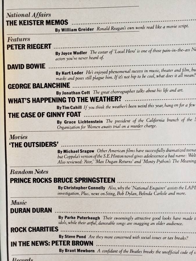 May 12, 1983 issue #395 of "Rolling Stone". This 92-page issue features a cover story on David Bowie, plus articles on Duran Duran, record reviews, and more. $10. +(RANSOM)