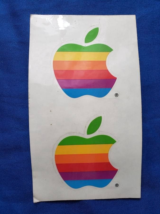 featuring the classic Apple Computer rainbow colors logo from the company's early days, each approximately 2-3/8 inches wide by 2-3/4 inches tall. +(RANSOM)