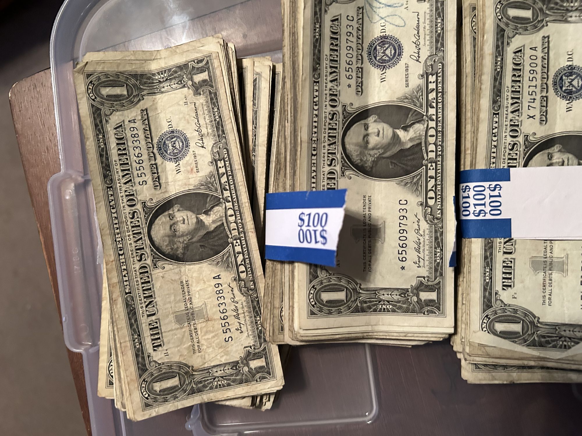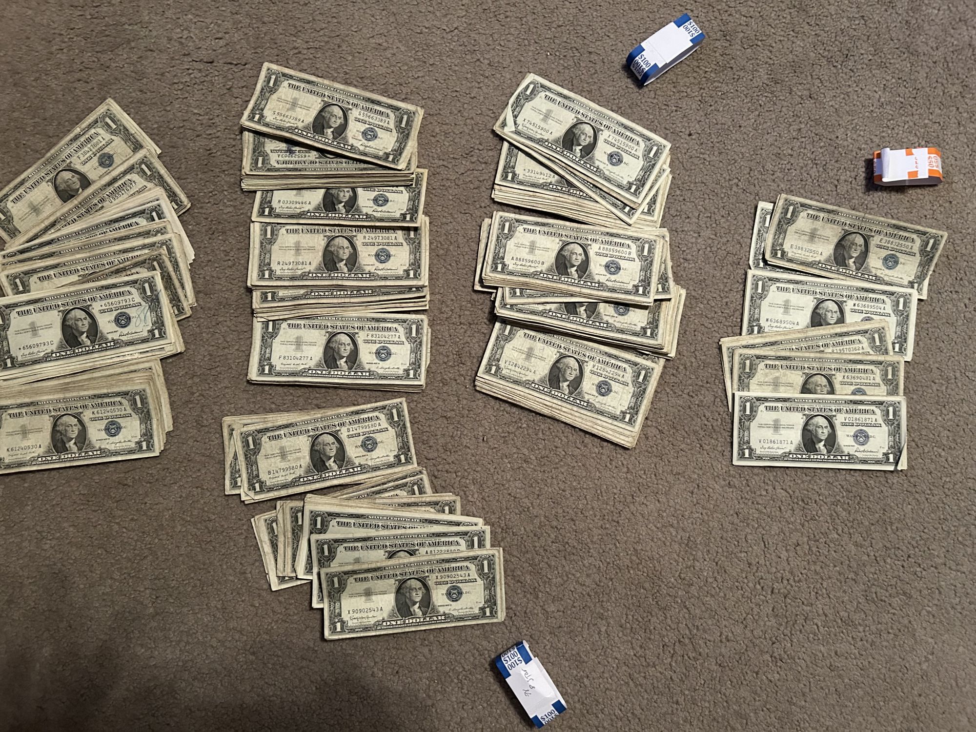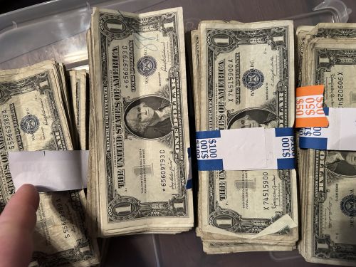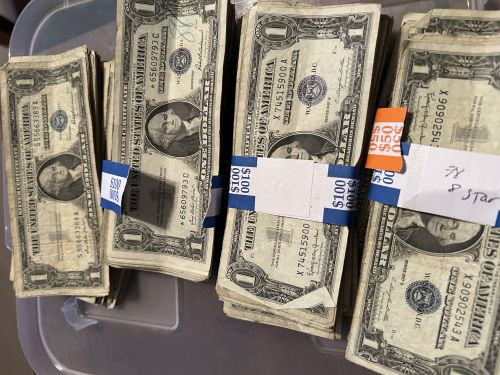 mostly silver, 408 total, some star notes, condition varies, will not separate. +(HAZLETON)