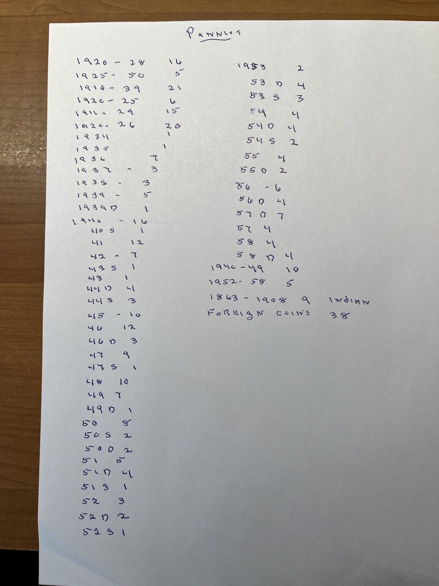 including Indian Head pennies, wheat pennies, dated 1910 thru 1958, also 1959 thru 2016 & foreign coins, +(HANOVER TWP.) Make Offer