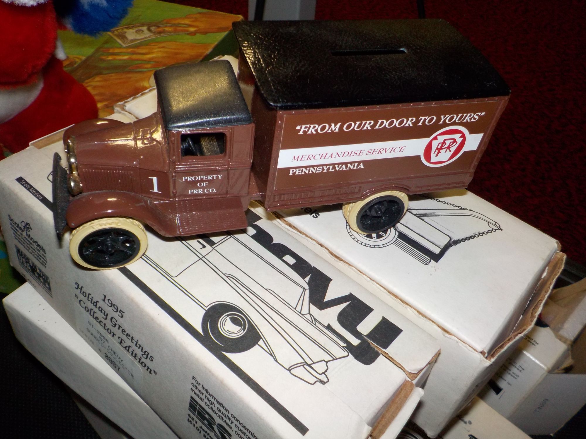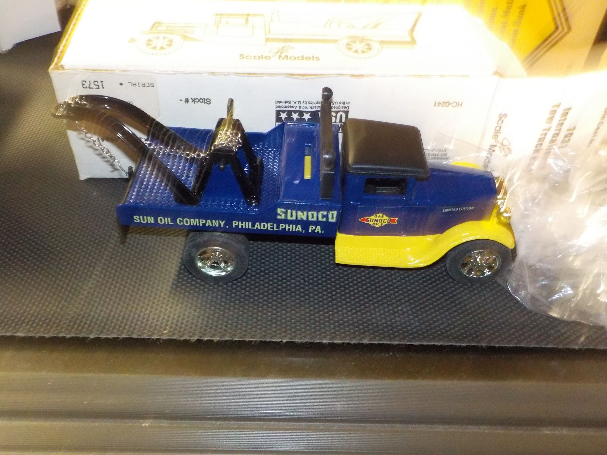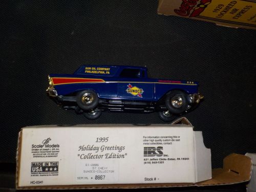 Coca Cola 1929 Lockeed Air Express, Die Cast; Metal Coin Bank, Authentic Scaled, USA; Scale Model “Spirit Of St. Louis”, Sunoco Blue Aviator Sampler, S#V999 Y48, USA; Sunoco Team 260, Tractor Trailer Limited Edition, September 1995; Sunoco Limited Edition, Win Rose Fuel Truck, 1995; Sunoco Limited Edition, Tractor Trailer, Jeff Fuller, 1996 Busch Services, Rookie of The Year; Vintage 1957 International R190 Tank Collector Bank; 1957 Chevy Sunoco Collector, 1995 Holiday Greeting Collector Edition S#0867, USA; 1931 International Fuel Truck Bank, S#157; 1931 Hawkeye Metal Truck, #1 Edition of 500 (2) +(WAVERLY TWP) Call
