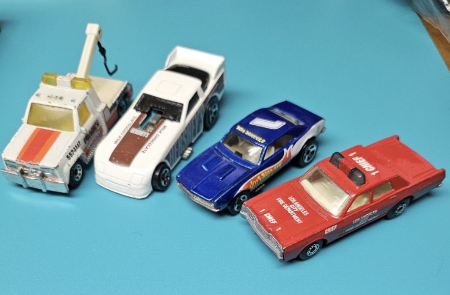 Hershey's Funny Car; Frank's Tow Truck; 1969 Chevy Camaro; Fire Chief's Car; all good to very good condition. Cash only. +(SCRANTON)