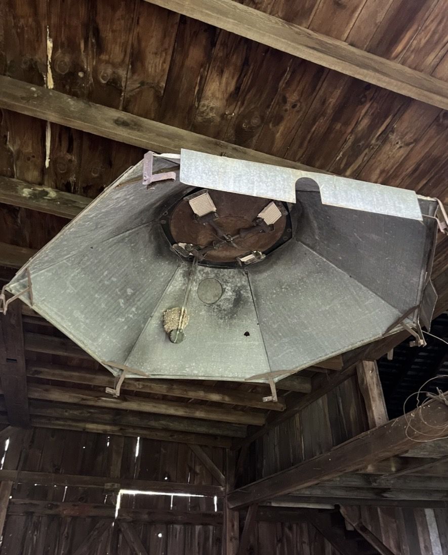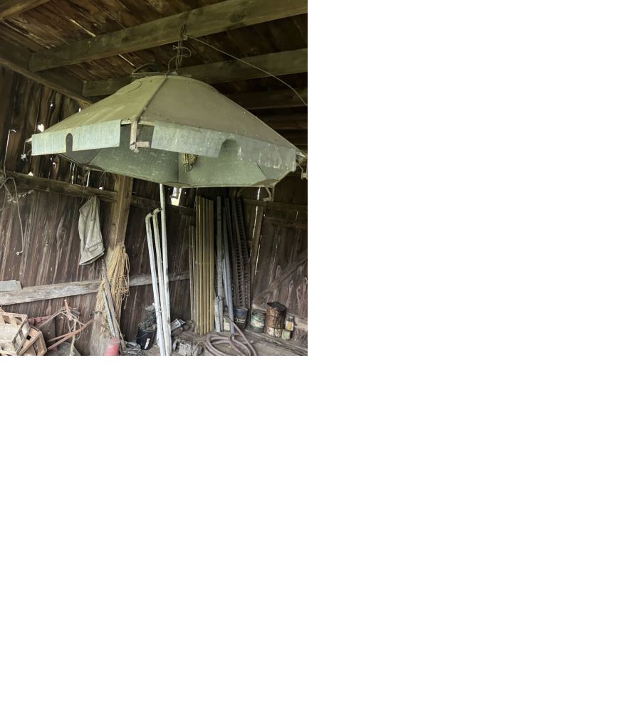 stored in barn where it is for at least 50 years, looks to be complete except that is it missing some side pieces, have 2 that could be put back on and 2 missing, should be easy to make from sheet tin, could probably be restored back to working order or repurposed without a lot of work, not sure of value, need to clean out the barn. +(BEAR CREEK)