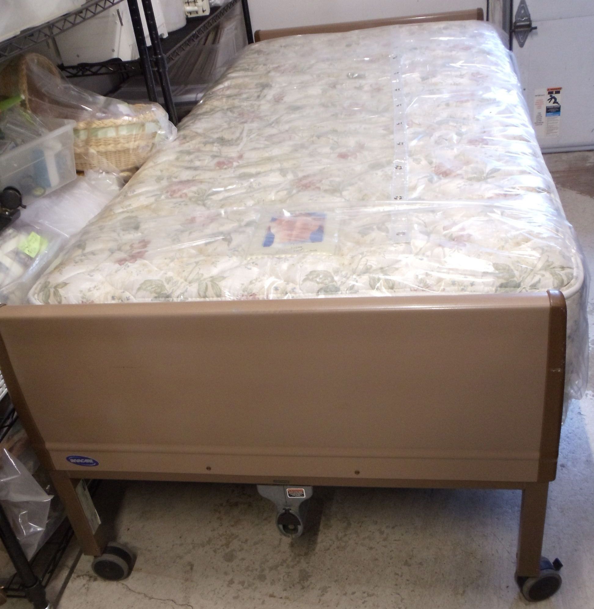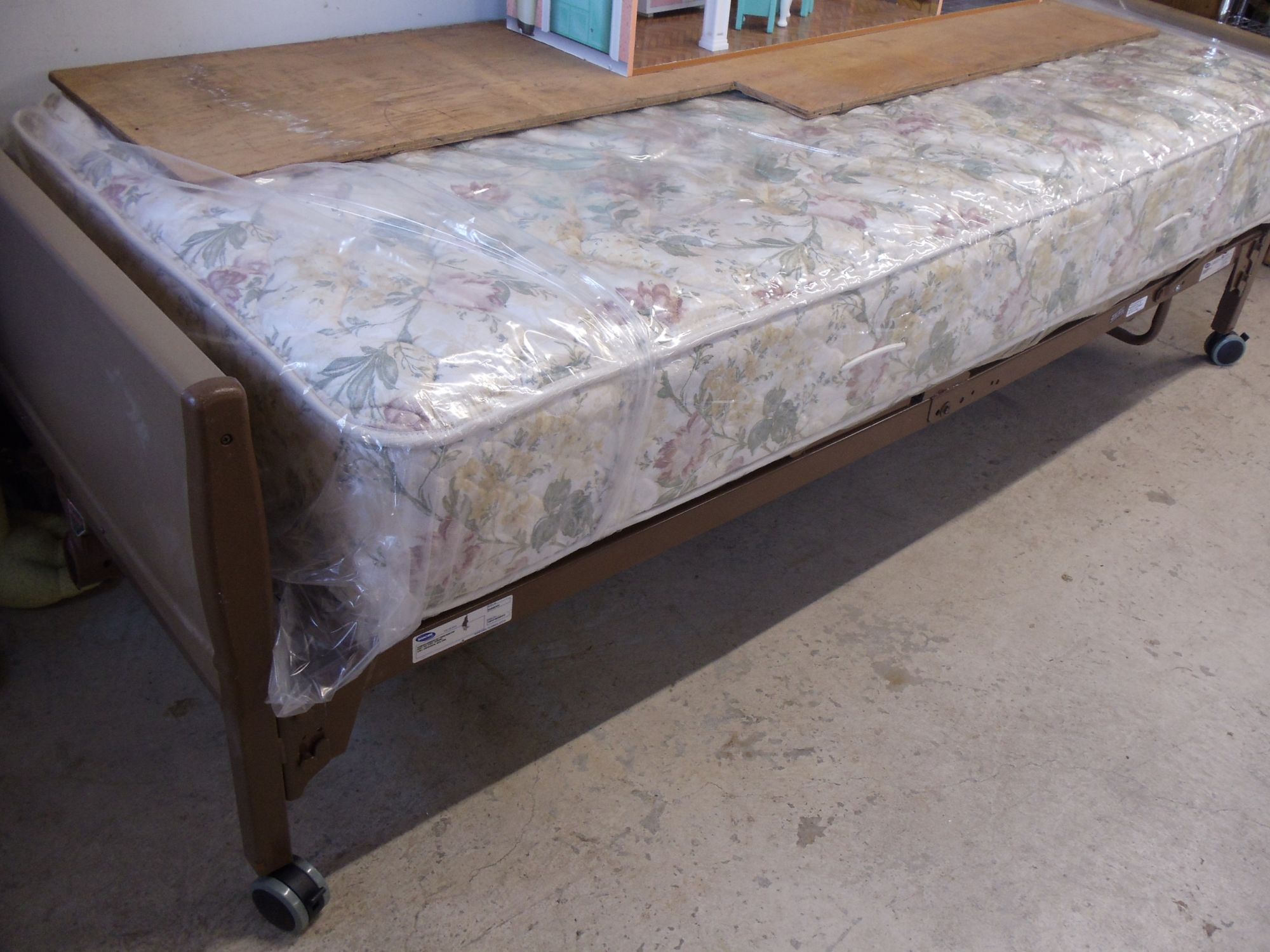 On wheels, hand control raises/ lowers head, feet, height, solid head & footboard, twin extra long size, complete, clean, very good condition, 2 beds together equal king size bed. (LARKSVILLE) $100.00 Each