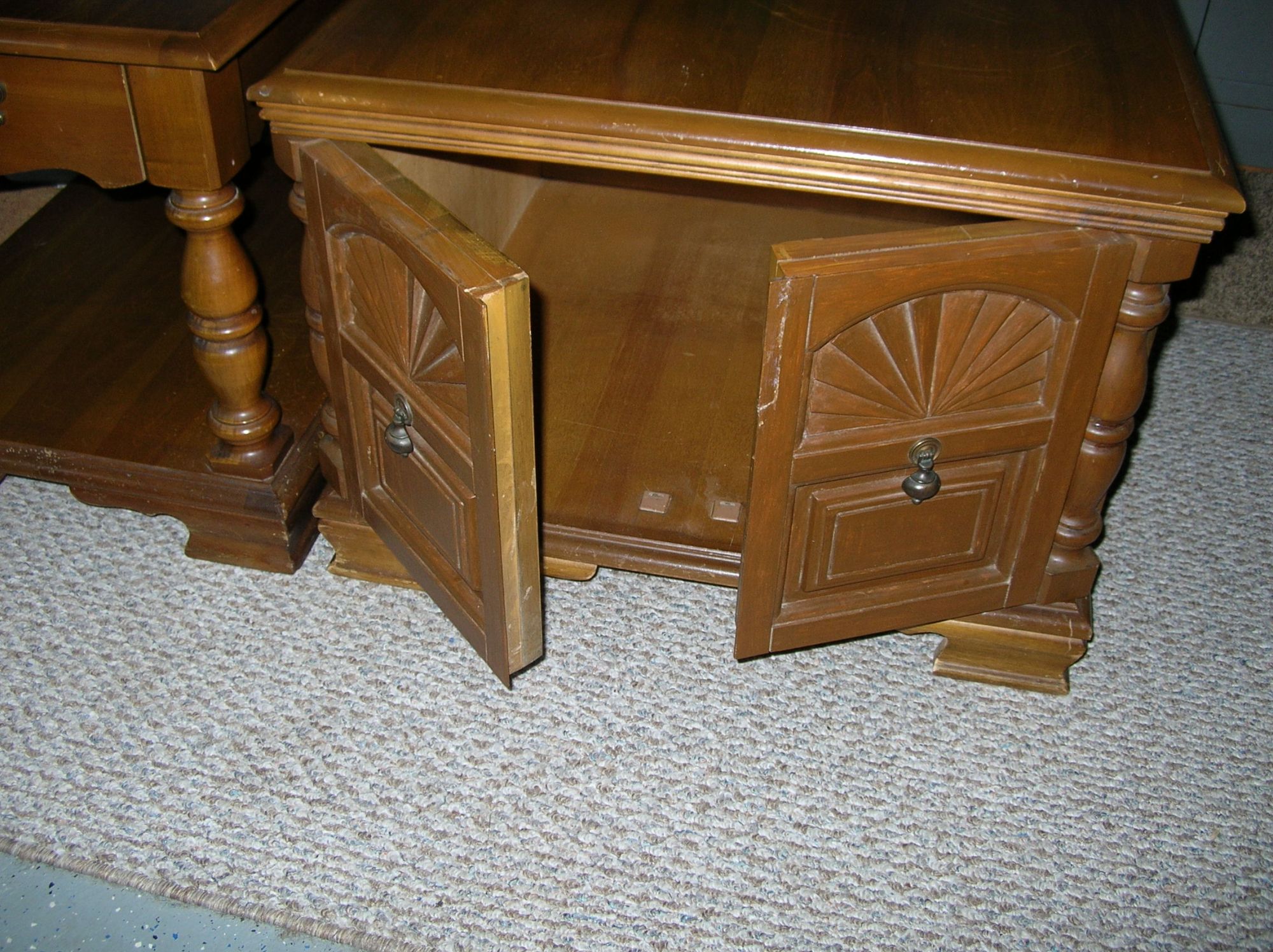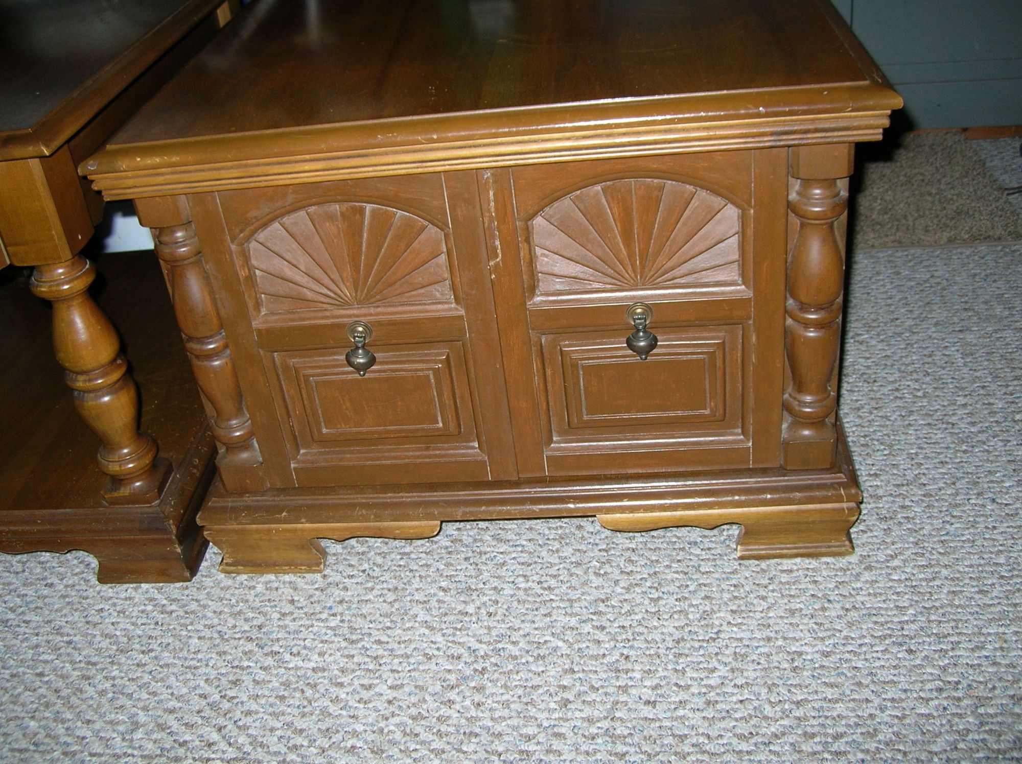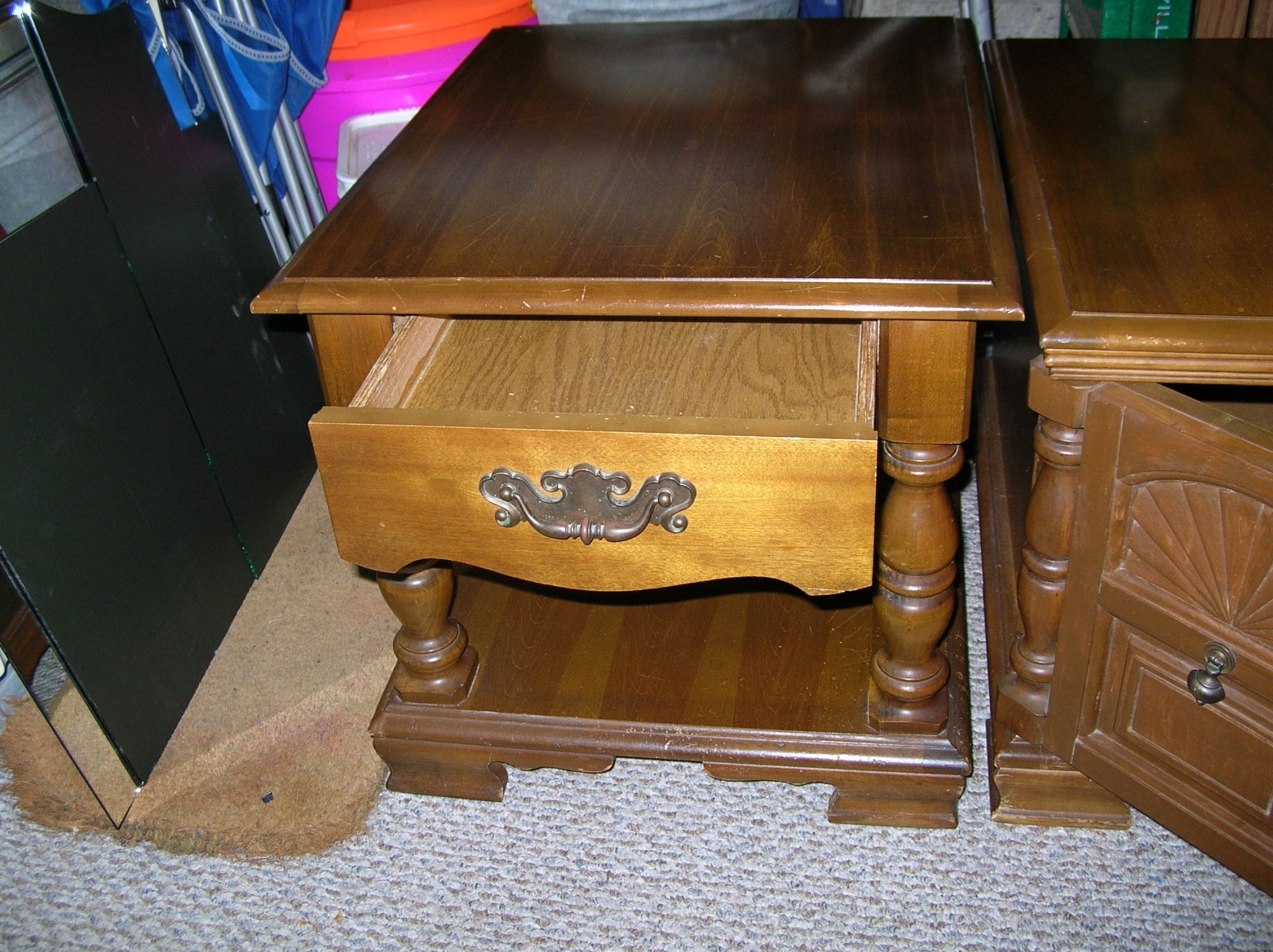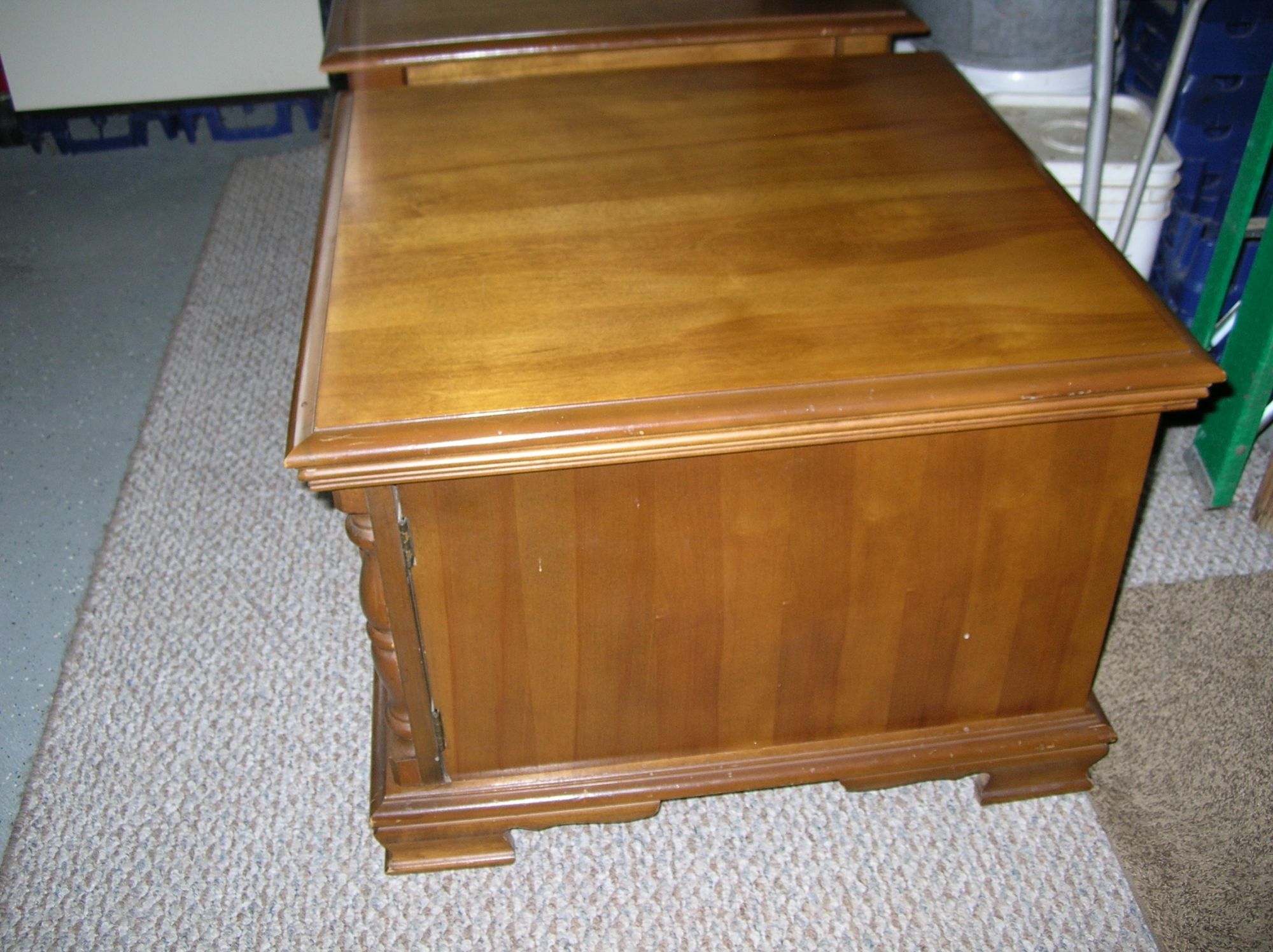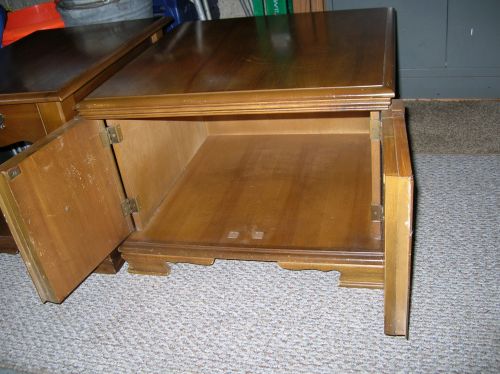 1 enclosed with 2 front doors, 28"x 28"x 20"H., 1 open with 1 drawer 22"x 28"x 21"H., nice condition +(PINE GROVE)