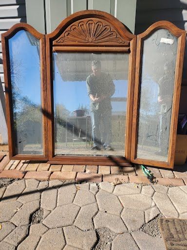 with 2-attached side mirrors, real wood, very good condition, 50"H.x 56"W., +(PITTSTON TWP.)